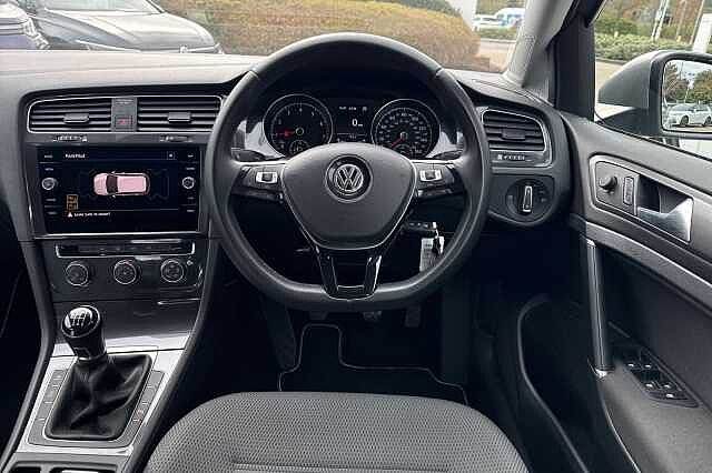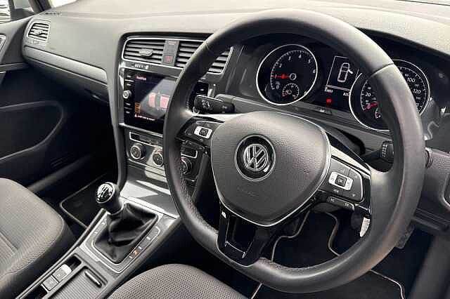 Outside mirror electr., Hands-free equipment, DAB radio, Bluetooth, Brake assistant, Central locking, Cruise control, LED daytime running lights, Electric windows, Heated wing mirror, Light sensor, Rain sensor, USB, NEDC CO2 emission: 119.0 g/km, ABS, Active brake assist, Adaptive cruise control, 5x Airbags (front + side + knee airbags), Alarm device, ESP, Immobiliser, Multifunctional steering wheel, Differential lock, Front wheel drive, Traction control, 5 seats, Centre arm rest, Dipping rear view mirror, Divided back seats, ISOFIX Child seat fastener, Leather steering wheel, Right-hand drive, 5 doors, Speed limit: 134 mph Paint - Metallic, Metallic - Tungsten silver, Trim - Cloth, Zoom/micro cloth - Titan Black Exterior Features, Electric front windows, Electric rear windows, Heated rear windscreen, Rain sensor, Rear window wash/wipe with intermittent wipe, Windscreen wipers/ intermittent wipe + 4 position delay, Black front air intake and radiator grille with chrome insert, Black rear diffuser, Body colour bumpers, Body colour door handles, Rear window aerial, Reflectors in all doors, Tailgate with integrated rear roof spoiler, Automatic coming/leaving home lighting function and rain sensor, Automatic headlights, Halogen headlights range adjustable via infotainment system with LED daytime running lights, High level 3rd brake light incorporating LED Technology, LED rear lights, Rear number plate lights incorporating LED technology, Safety, Anti-lock braking system (ABS), Automatic post collision braking system, Electronic parking brake with auto hold, Electronic stability control (ESC) including Electronic differential lock (EDL) and ASR (Traction control) with deactivation via infotainment system, Hydraulic Brake Assist (HBA), ACC - Adaptive cruise control with front assist, forward collision warning, distance monitoring, city emergency brake and speed limiter, Driver alert system, Driver profile selection, Front assistant collision mitigation, PAS - speed related, Power assisted speed sensitive electro-mechanical steering, Ultrasonic front and rear optical and audible parking sensors, Automatic dimming rear view mirror/rain sensor, Body colour door mirrors with integrated indicators, Electrically adjustable and heated door mirrors, 3 rear three point seatbelts, Child locks on rear doors, Driver/Passenger optimised head restraints, Drivers and Front Passengers airbags with front passengers airbag deactivation switch, Drivers knee airbag, Front and rear curtain airbags, Front seat side impact airbags, Pre crash preventive occupant protection, Three point height adjustable front seatbelts with tensioners, Tyre pressure loss indicator, Audio / Communications, App-Connect, Bluetooth hands free telephone connection, CD/MP3/WMA, USB and SD card reader, aux-in, Composition media system, DAB Digital radio receiver, Driver Convenience, Stop/start system, Miscellaneous, 'Lights On' Reminder warning buzzer, 8"" colour touch screen, Brake pad wear indicator warning light, Exterior temperature gauge, Instrument cluster in white, Multifunction computer, Rev counter, Trip and service interval display, Warning buzzer and light for front seatbelts unfastened, Battery regeneration during braking, Trim, Brushed dark silver decorative inserts in dash and door panels, Polar night black centre console, 3 rear headrests, 60/40 split folding rear seat backrest, Front seat back storage pockets, Isofix preparation for 2 rear child seats, Interior Features, Dust/pollen filter, 12V socket in luggage compartment, Bag hook in luggage compartment, Boot lashing points, Cooled glovebox, Cover for storage compartment in centre, Front centre armrest with storage compartment and two rear air vents, Grab handles front x 2, rear x 2 with integrated coat hooks, Height/reach adjust steering wheel, Load through provision with rear centre armrest and cupholders x2, Luggage compartment cover, Overhead storage box, Pearl grey headlining, Storage box in luggage compartment, Storage compartments in doors, Storage compartments in front doors, Storage compartments in rear doors, Three spoke multi-function leather trimmed steering wheel and gearknob, Three spoke steering wheel, Variable boot floor, height adjustable and removable, Courtesy light delay, Front and rear reading lights incorporating LED technology, Instrument lighting white adjustable panel illumination, Luggage compartment light, XDS electronic differential lock, Illuminated vanity mirrors, Sun visors, Packs, Mirror pack - Golf, Security, Alarm with interior protection, Electronic engine immobiliser, Remote central locking with 2 remote folding keys, Wheels, Steel space saver spare wheel