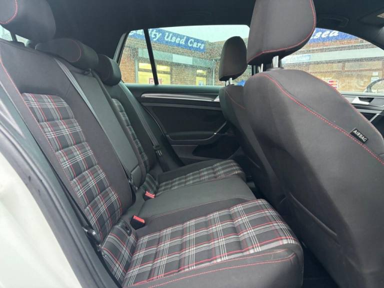 Service history Apple Car Play DAB radio Bluetooth Auto headlights Heated seats Parking sensors 12 months MOT 6 months warranty This 2018 Volkswagen Golf TSI GTI offers an exhilarating driving experience with its impressive 0-60mph acceleration of just 6.2 seconds. Powered by a robust 2.0 litre petrol engine and meeting Euro 6 emission standards, this GTI model is equipped with a host of desirable features. These include the Convenience Pack, which adds automatic headlights, and the Winter Pack, providing the comfort of heated front seats. For enhanced visibility and safety, it boasts LED headlights with dynamic curve light technology, and parking is made simple with front and rear parking sensors. Beyond its performance and comfort, this Golf GTI provides ample practicality with its large boot space, making it suitable for everyday use and longer journeys alike. The inclusion of features like LED headlights with dynamic curve light and heated front seats demonstrates a higher level of specification compared to many other vehicles in its class, offering a more refined and convenient ownership experience..12V Socket - Luggage Compartment, 18in Alloy Wheels - Parker, ABS - Anti-Lock Braking System with HBA - Hydraulic Brake Assist, Active Info Display, Adaptive Cruise Control, Airbags, Alarm with Interior Protection, Ambient Lighting Pack, Anti-Tramp Function, Automatic Coming-Leaving Home Lighting Function, Automatic Post-Collision Braking System, Bag Hooks in the Luggage Compartment x2, Black Rooflining, Body Coloured Bumpers, Body Coloured Door Handles, Body-Coloured Door Mirrors with Integrated Indicators, Brake Calipers - Red, Brake Pad Wear Indicator, Car-Net App Connect, Carpet Mats - Front and Rear, Child Security Locks in the Rear Doors, Chrome Plated Air Vent Surrounds, Chrome Plated Electric Mirror Adjustment Switch Surround, Chrome Plated Electric Window Button Surrounds, Chrome Trimmed Front Air Intake Surround, Chrome-Plated Light Switch Surround, Climate Control, Composition Media System, Convenience Pack, Cover for Storage Compartment in Centre Console, Cup Holders - Front x2, Discover Navigation Touch-Screen Navigation-Radio System with Car-Net Guide and Inform, Driver Alert System, Driver Personalisation Profile, Drivers and Passengers Safety Optimised Head Restraints, Driving Mode Selection, Dusk Sensor - Automatic Driving Lights, Dust and Pollen Filter, ESC - Electronic Stability Control including EDL - Electronic Differential Lock and ASR - Traction Control with Deactivation via Infotainment System, Electric Windows - Front and Rear, Electronic Engine Immobiliser, Electronic Parking Brake with Auto Hold Function, Extended Sill Strips - Flared, Front Assist, Front Centre Armrest with Storage Compartment and Two Rear Air Vents, Front Fog Lights - LED, Front Footwell Illumination, Front Seat Back Storage Pockets, Front Sport Seats with Height and Lumbar Adjustment, GTI Sports Suspension - Lowered, GTI Styling Pack, Galvanised Body, Glovebox - Cooled, Grab Handles - Front x2 Rear x2 with Coat Hooks, Headlight Washers, Heated Front Seats, Heated Rear Windscreen, Heated Windscreen Washer Jets, Height-Adjustable Front Three-Point Seat Belts with Tensioners, High Level 3rd Brake Light Incorporating LED Technology, Honeycomb Black Decorative Inserts in Dash and Door Panels, Honeycomb Radiator Grille with Red Stripe, ISOFIX Child Seat Preparation for 2 Rear Seats, Illuminated Door Sill Protectors, Instrument Lighting - White Adjustable Panel Illumination, Interior Light Delay, LED Headlights with Dynamic Curve Light, LED Tinted Rear Light Clusters