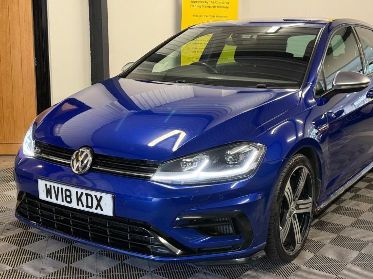 2018 Volkswagen Golf 2.0 TSI R DSG 4Motion Euro 6 (s/s) 5dr.46,450 miles. Finished in Lapiz Blue metallic with race cloth centre seats and grey Alcantara bolsters. A clean and well-presented example of the desirable Golf R. This vehicle is equipped with a Ghost immobiliser and comes with two keys, full V5, three former keepers, handbooks and book packs. A full health check from March 2025 is also on file.It has a full service history, including servicing at Volkswagen in February 2024, a full service by Manor Motors in March 2025, and a service and transmission service by Research Garage Group in 2023. It was also serviced by Lees Autos Ltd in October 2022, and previously by Gavin Reed in 2019, January 2020 and November 2020.An A service and MOT will be completed as part of the preparation process. A TWELVE-month comprehensive warranty is included, with the option to extend for up to two years. Part exchange is welcome for any value, and our Buying Department can provide prompt valuations. Nationwide delivery is available at a competitive cost upon request.You can reserve this vehicle today with a 250 fully refundable deposit. We have over 150 vehicles in stock across our two sites to choose from. Established in 2021, we pride ourselves on our excellent reviews and commitment to customer service.As an AA Approved Dealer with Trading Standards endorsement, you can buy with confidence knowing all our retail vehicles are fully health-checked and prepared to the highest standard. Every car comes with 12 months free AA roadside breakdown and recovery, regardless of age, value or mileage. We are authorised and regulated by the Financial Conduct Authority under FRN: 1014981.