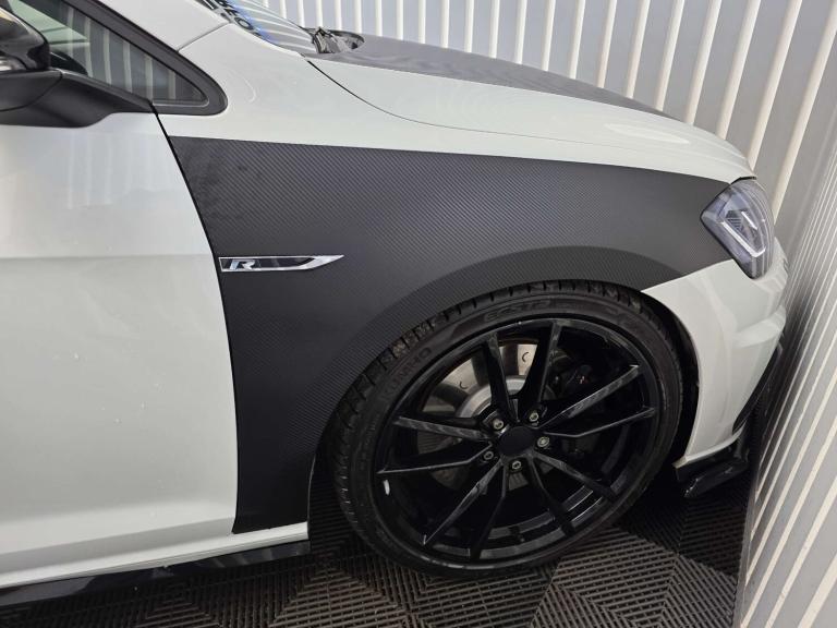 Introducing the Volkswagen Golf 2.0 TSI R Hatchback – a true masterpiece of engineering and design that promises to elevate your driving experience to unparalleled heights. With just 38,581 miles on the clock, this stunning vehicle is ready to deliver the thrill of the open road with every journey.Finished in a striking Pure White, this Golf is not just a car; it's a statement. The sleek lines are accentuated by the Carbon Wrapped Wings and a Roof Wrapped in Black, giving it an aggressive yet sophisticated look that is sure to turn heads wherever you go.Equipped with 19-inch Pretoria Black Alloy Wheels, this Golf sits proudly on Lowering Springs, offering a dynamic stance and enhanced handling. The Rear Tinted Glass, with approximately 90 percent tint from the B Pillar backwards, adds a touch of mystery and privacy, while the Motorsport Intercooler and Direnza Intake ensure that performance is as exhilarating as its appearance.For those who crave the ultimate driving experience, the Back Box Delete and Upgraded Anti Roll Bar Bushes provide a symphony of sound and stability, while the Rear Toe Links ensure precision handling around every corner. This is not just a car; it's a finely-tuned machine designed for those who demand the best.Under the bonnet, the 2.0 TSI engine delivers an impressive 310 PS, harnessed through the seamless DSG transmission and 4Motion all-wheel drive system. Whether you're navigating city streets or exploring winding country roads, the Volkswagen Golf offers unmatched performance and control.Don't miss your chance to own this exceptional vehicle. The Volkswagen Golf 2.0 TSI R Hatchback is more than just a car; it's an experience waiting to be discovered. Visit us today and take the first step towards driving excellence.