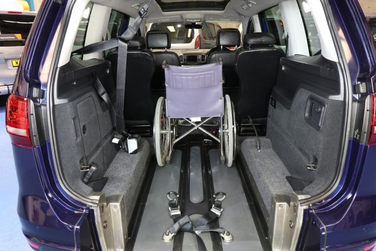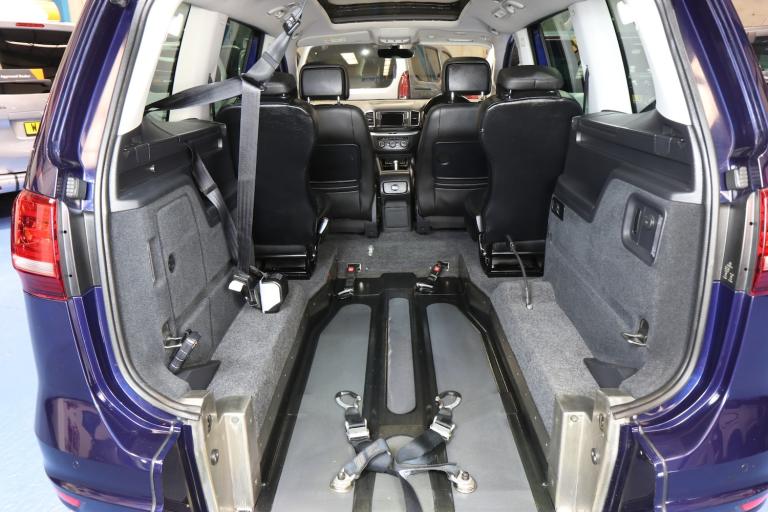 Brotherwood VW Sharan wheelchair-accessible car: It features 4 seats and a lowered floor to accommodate a power or manual wheelchair. It has a low-level ramp. All belts and straps secure the wheelchair in place. A power winch helps pull the chair into the vehicle. It is in excellent condition. It has privacy glass. ref; HG18 OVJ...........You will be shown how to secure the wheelchair........ Ulez and Clean Air Zone compliant......... RAC Approved WAV....... Free delivery......... All our wheelchair-accessible cars have a current safety certificate for wheelchair restraints........ Copyright Wheelchair Cars Ltd, 2016-2025. Full details on our website, wheelchaircars. co. uk. All our vehicles are HPI clear. Debit cards are taken, and free delivery is to your door upon approval. Call us on 0161 793 5934. We deliver the car, not a transport company, and we show you how to load a wheelchair. This is a classified ad; there is no bidding! You are ok to ring us! 0161 793 5934.. 40 more wheelchair cars on our website; wh eelchaircars. co. uk