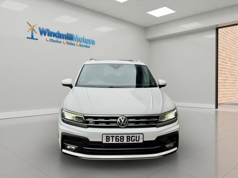 GOOD SERVICE HISTORY / MOT SEPTEMBER 2026 - HUGE SPEC - R LINE - ULEZ - PANORAMIC SUNROOF, NAVIGATION, WINTER PACK, HEATED SEATS, APPLE CARPLAY, ANDROID AUTO, ADAPTIVE CRUISE CONTROL, LANE ASSIST, FRONT ASSIST, FRONT AND REAR PARKING SENSORS, BLUETOOTH, DAB RADIO, USB PORT, AIR CON, CLIMATE CONTROL, AMBIENT LIGHTING, AUTO LIGHTS/WIPERS, DAYTIME LEDS, POWER FOLD MIRRORS, 20'' ALLOYS AND MUCH MORE! - GOOD SERVICE HISTORY - LAST SERVICED BY US AT 72K MILES - MOT SEPTEMBER 2026 - FREE 3 MONTHS NATIONWIDE PREMIUM WARRANTY COVER INCLUDED (Extended Warranty Available) - 2X SETS OF KEYS - BOOK PACK/OWNERS MANUALS INCLUDED - HPI CHECKED AND CLEAR -With an MOT valid until September 2026 and a clear vehicle history check, this 2018 Volkswagen Tiguan TDI R-Line offers excellent peace of mind. This stylish SUV is powered by an efficient 2.0 litre Euro 6 diesel engine, delivering a strong performance while achieving an impressive 48 miles per gallon. The R-Line trim ensures a premium feel, complemented by a spacious boot perfect for all your needs. Inside, you'll find modern technology including Car-Net App Connect, which seamlessly integrates your Android Auto or Apple CarPlay. Parking is made effortless with front and rear parking sensors and assistance systems, while the dusk sensor automatically activates the headlights. For added comfort, especially during colder months, this Tiguan features heated front seats as part of its winter pack.This Volkswagen Tiguan stands out with its low CO2 emissions, contributing to a more environmentally conscious drive. It also benefits from a low insurance group, making it an economical choice for many drivers. These highlights demonstrate how this vehicle offers superior value and running costs compared to other similar models on the market. The vehicle has a last service mileage of 72,000 miles and comes with a 3 month warranty for your assurance.