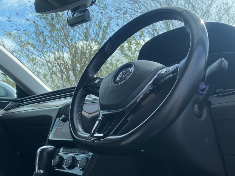Crossroads Garage are delighted to offer another superb used vehicle; this technologically advanced Volkswagen Arteon 1.5 TSI EVO Elegance DSG which has just arrived in stock with us. COLOUR & TRIM - Presented in the highly desirable colour Urano Grey VW metallic paintwork with 18"" Muscat alloy wheels. The interior is finished with Black Full Leather upholstery on electric, heated front sports seats. SOURCE - This premium VW Fastback was purchased by us directly from it's previous keeper. SERVICING - Our example has covered just 49000 miles and is provided with a Full Service History. It is of-course HPI clear and the mileage has been verified with VOSA records. PERFORMANCE - This Arteon Elegance looks and drives superb. Having been put through our multi-point check this car is supplied with a fresh 12 Months MOT. We will provide this car with our comprehensive parts & labour warranty. SPECIFICATION - Our well-equipped Arteon Fastback has an extensive specification which includes, 7-Speed Automatic Gearbox With Paddleshift, VW Virtual Cockpit With Digital Instrument Cluster, High Resolution Colour Multi Media Screen With Discover Satellite Navigation, Wireless Apple CarPlay, Front & Rear Parking Sensors With Optical Display, Heated Seats, Electric Seats, LED Headlights, Adaptive Cruise Control, Ambient Interior Lighting, Selectable Driving Modes, Dual-Zone Climate Control, Bluetooth Phone With Audio Streaming, Multi-Function Flat-Bottom Sports Steering Wheel, USB Input, DAB Radio, Electric Folding Door Mirrors, and more besides. WHAT TO EXPECT FROM US - Fabulous finance packages and the comfort of knowing your car is being supplied by a multi award-winning dealer including Trading Standards Retailer of the Year and we have customer feedback scores to be proud of. All of our vehicles are prepared to a high standard by our team of skilled technicians and will be valeted ready for collection. We take pride in our efforts to make this the most enjoyable car-buying experience you'll ever have. Please call and speak to James, Alan, Dean or Simon who'll be able to answer any questions you have, to reserve this wonderful example today or to book a viewing. Please remember to bring a valid Full Driving Licence with you. Thank You.