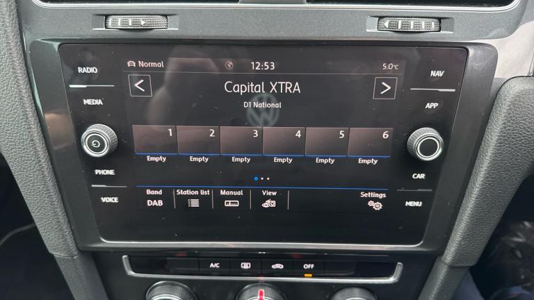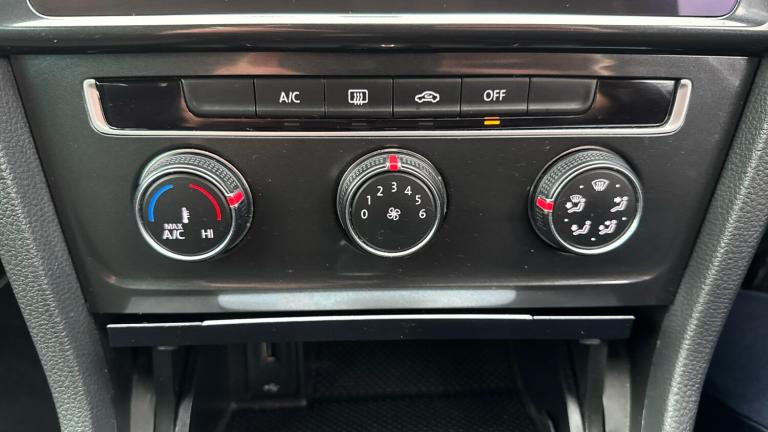.Windscreen wipers/ intermittent wipe + 4 position delay, Automatic post collision braking system, ACC - Adaptive cruise control with front assist, distance monitoring, city emergency brake and speed limiter, Bluetooth telephone and audio connection for compatible devices, Power assisted speed sensitive electro-mechanical steering, Stop/start system, Misfuelling protection device, Remote electrically foldable door mirrors, door mirror puddle lights and reverse activated kerb-view adjustment on passengers door mirror, Brushed dark silver decorative inserts in dash and door panels, Battery regeneration during braking, Multi device interface (MDI) with USB connection, Tailgate with integrated rear roof spoiler, LED front fog lights with static cornering light function, Dust/pollen filter, Storage compartment in roof console with cover, Luggage compartment lighting, Convenience Pack - Golf, Tyre pressure loss indicator, 60/40 split folding rear seat backrest
