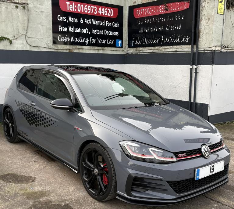 2019/19 VW GOLF GTI TCR 2.0 TSI 290 DSG 3DR FOR SALE.Finished in the TCR exclusive Pure Grey paintwork with special TCR seats.Has covered 52k miles with full service history.Last serviced November 2025 @ 50,242 miles.A rare 3 door TCR which is inspired by the TCR race car, it includes a unique front splitter, rear diffuser, and optional TCR decals/graphics plus this one comes with the much sought after optional Performance Pack - 19-inch Reifnitz forged wheels, Dynamic Chassis Control (DCC) with adaptive dampers, lowered suspension (20mm), and increased top speed (162 mph) and the stunning panoramic sunroof.Factory spec includes sat nav, Apple CarPlay, DAB radio, Bluetooth, heated seats, reverse camera, dual zone climate control, front and rear sensors plus more..