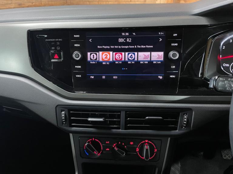 This 2019 Volkswagen Polo 1.0 EVO SE Hatchback with only 24400 miles on the clock is the perfect combination of style and efficiency. With a petrol engine and manual transmission, this Euro 6 (s/s) vehicle is ULEZ compliant. The sleek hatchback design features 5 doors and 5 seats, providing ample space for passengers and cargo. The exterior boasts 15in Alloy Wheels, Black Radiator Grille with Chrome Trim, and Body Coloured Bumpers, while the interior offers comfort and convenience. The black interior features include Black Radiator Grille with Chrome Trimmed Louvres. All of our vehicles go through a detailed mechanical and safety inspection and are fully serviced with a 12 month MOT with no advisories prior to collection. Features Include: , heated rear windscreen - automatically switches off, hill hold control, interior lighting with delayed switch off, composition media system