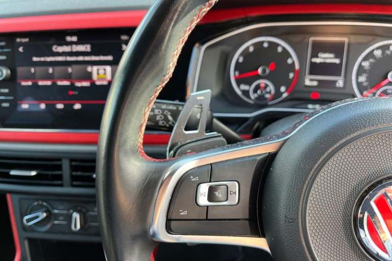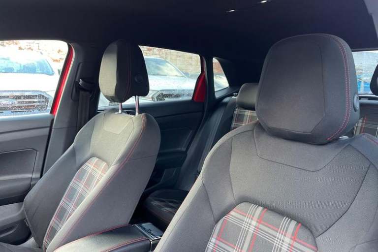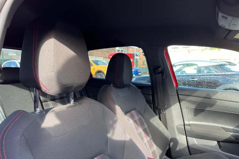 App-Connect, Digital clock, Driver alert system, Driving Mode Selection with four preset modes - Eco, normal, sport or individual modes, Lights on warning, Multifunction computer plus, Power assisted speed sensitive steering, Speedo and rev counter, electronic odometer, trip, service interval display and fuel gauge, Start/stop system, Volkswagen connect, Warning buzzer and light for front seatbelts unfastened, Body colour door handles, Body coloured side sills, Electric front windows, Extended sill strips flared in black, Front fog lights including static cornering, Front windscreen washers and wipers with 4 speed intermittent delay, Gloss black rear spoiler (roof), Heat insulating tinted glass, Heated rear window with auto timer, High level 3rd brake light, Honeycomb radiator grille with red stripe, LED darkened rear light clusters, LED daytime running lights, LED rear number plate lights, Rear electric windows, Rear windscreen washer and wiper with interval delay, reverse activated, Stainless steel door sill protections with GTI logo, Twin chrome exhaust tailpipes, Unique GTI badging, 2 bag hooks in luggage compartment, 2 front cupholders and 12 V socket with cover, 3 rear head restraints, 60/40 split folding rear seat, AlumInium look pedals, Ambient lighting in front foorwell, front/rear door and dashboard light strips, Black roof lining and sun visors, Centre console storage with open storage compartment, Chrome-plated electric mirror adjustment switch surround, Chrome-plated