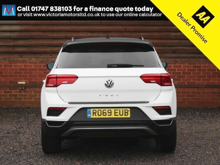 ***FOR VIEWINGS AND TEST DRIVES CALL US ON 01747 838103 TO BOOK AN APPOINTMENT***Great looking T-Roc fitted with VW's newer 1.0 litre turbo petrol engine producing impressive power of 115 BHP and great fuel economy of over 45 mpg combined finished in white with a black roof, equipment including the newer wide touch screen media unit with DAB radio and apple car play resulting in the ability to mirror the apps from your Iphone onto the car media screen including Google maps and Spotifiy, media connections, bluetooth, parking aid, auto air conditioning, auto lights, roof rails alloy wheels and more, 1 owner, 26750 miles, service history, high up driving position with easy access in and out of the cockpit***PART EXCHANGE AVAILABLE***USE THE FINANCE CALCULATOR ON OUR WEBSITE [Website URL removed] AND QUOTE YOURSELF A MONTHLY PAYMENT FIGURE TODAY WITH ZERO DEPOSITS AVAILABLE***