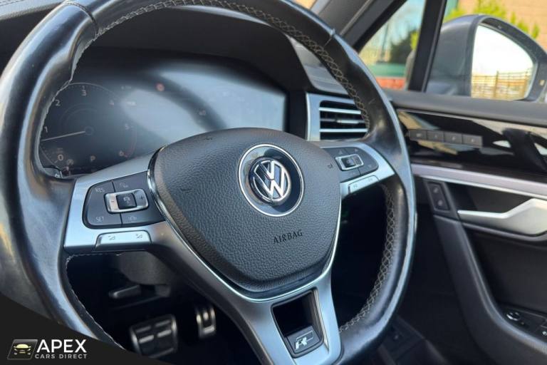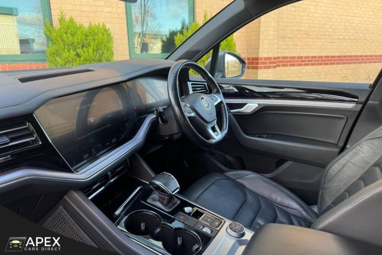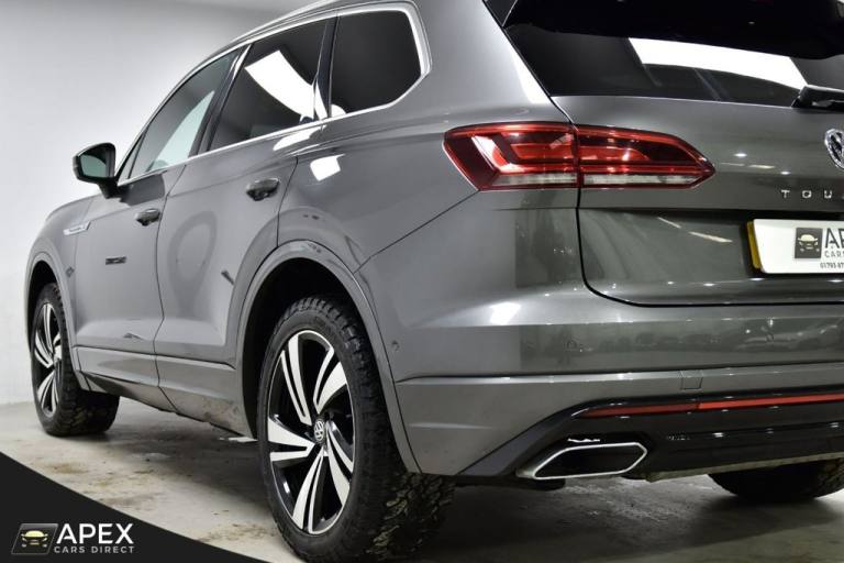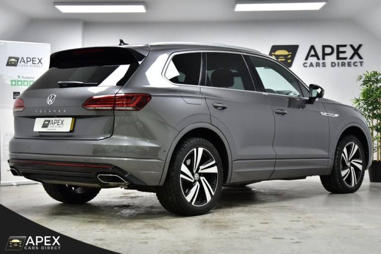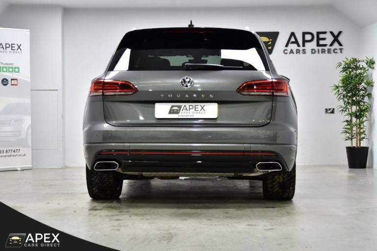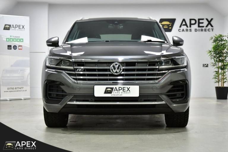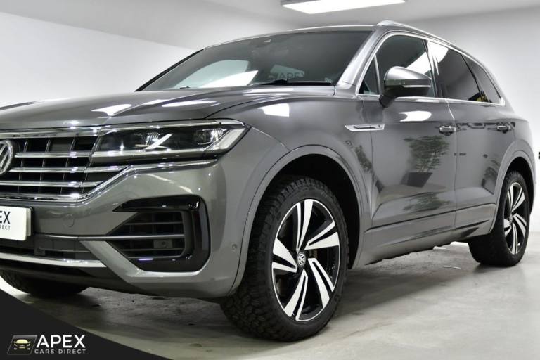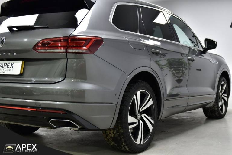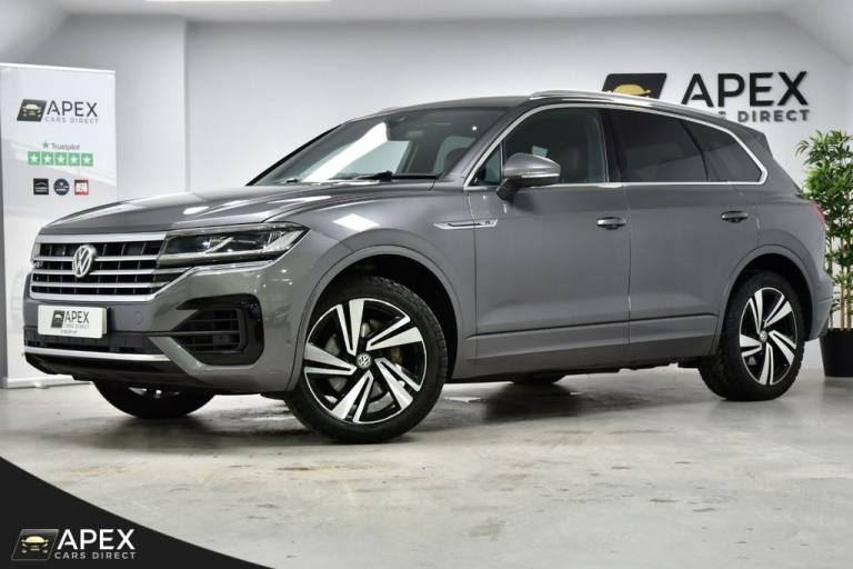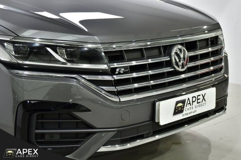 Apex Cars Direct are proud to present this stunning Volkswagen Touareg 3.0 TDI V6 R-Line Tech Tiptronic 4Motion. Collected from its last owner, this Touareg boasts a full Dealership & Specialist Service History. We will also provide a fresh service (updated to your Volkswagen History), a 12-month MOT and a 6-month nationwide warranty ready for its new owner. It has also successfully passed our comprehensive 163-point inspection, ensuring it meets our high standards. This Volkswagen Touareg is presented with striking 20-inch Braga alloy wheels, fitted with four brand-new tyres, and is complemented by R-Line body styling that includes colour-coded front and rear bumpers, side skirts, sills and chrome exterior detailing. Silver anodised roof rails, chrome window surrounds and a chrome-accented radiator grille enhance the premium exterior appearance, while tinted rear privacy glass and heat-insulating glazing add both comfort and style. The interior is finished to an exceptionally high standard, featuring Vienna R-Line embossed Ergo Comfort leather upholstery in Soul-Crystal Grey, paired with a Soul Black headliner and brushed R-Line aluminium decorative inserts across the dashboard and door panels. The cabin benefits from ambient white lighting and stainless-steel R-Line door sill protectors, pedals and a stainless-steel load sill protector. Both front seats are electrically adjustable with four-way lumbar support, heating and memory functions for the driver. A heated, leather-wrapped R-Line multifunction steering wheel with paddle shifts sits ahead of the Innovision Cockpit, which combines the Volkswagen Digital Cockpit with a premium Discover Navigation Pro touchscreen system. This includes DAB digital radio, Bluetooth connectivity and full smartphone integration via Apple CarPlay, Android Auto and MirrorLink. Comfort is further enhanced by four-zone climate control, keyless entry and an electrically operated tailgate with power latching and a powered luggage cover. The rear seats are split 60/40 and include a folding centre armrest with integrated cup holders, while the luggage area features load lashing rings for added practicality. The Touareg is equipped with a premium audio system delivering clear sound through eight speakers, along with multiple USB ports located in the front armrest compartment and rear centre console. Wireless smartphone charging is also housed within the front centre console storage compartment. Additional features .REAR LAMINATED SAFETY PRIVACY GLASS, 20 INCH BRAGA ALLOY WHEELS, HEATED FRONT SEATS AND STEERING WHEEL, PARK ASSIST AND REAR CAMERA, 4ZONE CLIMATE CONTROL, Silicon Grey, Vienna R-Line Embossed Ergo Comfort Leather - Soul-Crystal Grey, 20in Alloy Wheels - Braga, Laminated Safety Privacy Glass, 12V Socket x3, 20in Alloy Wheels - Nevada, 4MOTION Active Control, ABS Plus - Anti-Lock Braking System with EBD - Electronic Brake-Pressure Distribution and HBA-Hydraulic Brake Assist, Active Bonnet, Adaptive Cruise Control - Including Front Assist - Radar Sensor Controlled Distance Monitoring System, Air Vents in B-Pillar, Alarm with Interior Protection - Back up Horn and Towing Protection, Ambient Lighting - White, Automatic Coming Home Lighting Function, Automatic Dimming Interior Rear View Mirror, Automatic Headlight Control, Automatic Post-Collision Braking System, Body Coloured Door Handles, Body Coloured Door Mirrors with Integrated Indicators, Body Coloured Front and Rear Bumpers, Body Coloured Wheel Arch Protection, C Signature Gloss Black Front Air Intake, Car Net - Guide and Inform (3 Year Subscription From New), Car-Net App Connect, Car-Net Security and Service including eCall, Carpet Mats - Front and Rear, Central Locking with Remote Control, Child Security Locks for Front and Rear Doors - Activated from Drivers and Front Passengers Door, Chrome Side Window Surrounds, Chrome Trimmed Upper and Lower Grille Louvres, Climate Control - 4Zone, Coat Hook on B Pillar x2, Cup Holders Front x2 Centre Console - Illuminated, Curtain Airbag System for Front and Rear Seats with Side Impact Airbags for Front Seats, Discover Premium Infotainment System, Driver Alert System - Audible and Visual, Drivers and Front Passengers Airbags with Front Passenger Airbag Deactivation Switch, Drivers and Front Passengers Double Sun Visors with Illuminated Vanity Mirrors, Drivers and Passengers Safety Optimised Head Restraints - 4 Way Adjustable, Driving Profile Selection, Dusk Sensor, ESC - Electronic Stability Control Including EDL - Electronic Differential Lock - ASR - Traction Control and Trailer Stabilisation Function, Electric Tailgate with Power Cover, Electric Windows - Front and Rear, Electrically Heated - Adjustable and Foldable Door Mirrors with Auto Dimming with Puddle Lighting, Electronic Engine Immobiliser, Electronic Parking Brake with Auto Hold Function, First Aid Kit and Warning Triangle, Front Centre Armrest with Storage Compartment - LED Lights, Front Three-Point