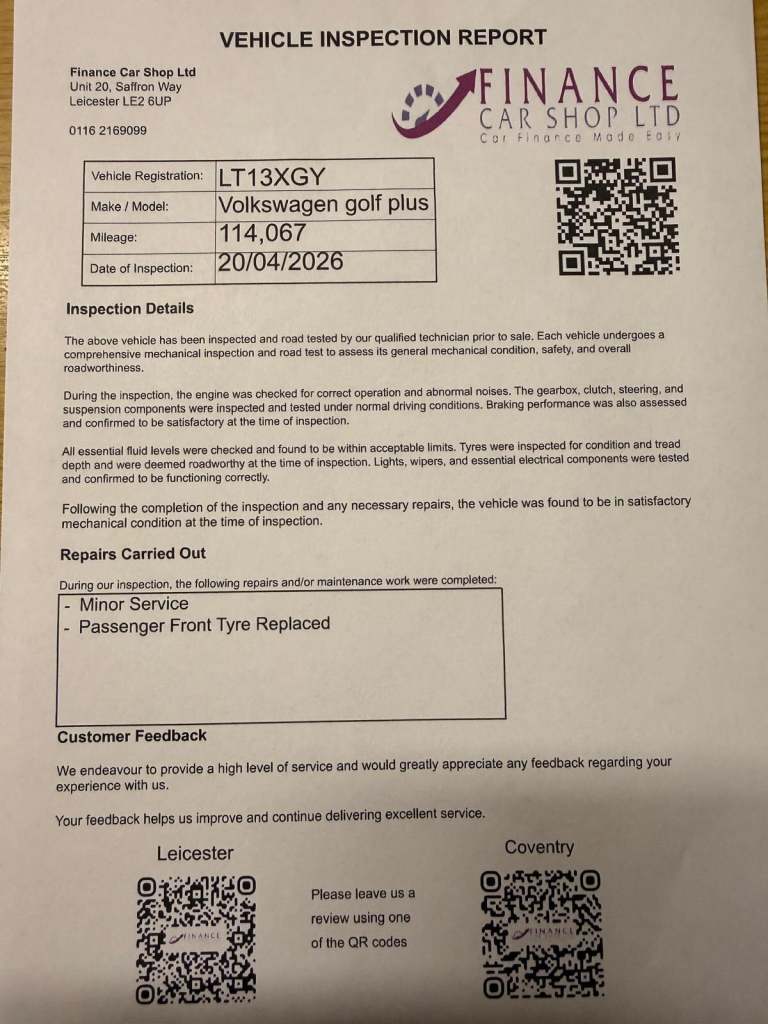 BUY WITH CONFIDENCE FROM THE OFFICIAL WINNER OF 2023 UK INDEPENDENT DEALER OF THE YEAR FASTEST GROWING DEALER - MOTOR TRADE DEALER AWARDS Nuneaton Car Sales are delighted to be able to offer this stunning 7 seater VW Touran for sale at our showroom. This wonderful example benefits from 16 inch alloy wheels, front and rear parking sensors, start stop, air conditioning, a panoramic glass roof, electric sunroof and sunshade, roof rails, ISOFIX rear seat mountings, Privacy tinted rear windows, multiple drive modes, collision assist, adaptive cruise control, a touch screen infotainment system with Sat Nav, CD, DAB, coice control and Bluetooth connectivity. This vehicle has previously been serviced on: 21/08/2020 @ 8524 miles (VW Dealer) 31/05/2022 @ 19969 miles (VW Dealer) 12/05/2023 @ 27366 miles (VW Approved Service Centre) 26/09/2025 @ 45133 miles (VW Approved Service Centre) The team at Nuneaton Car Sales will carry out an additional comprehensive inspection on the vehicle prior to its sale. Please note our prices are NOT subject to an ADMIN FEE unlike many car dealers that can be as high as £490. Personalised videos available from our multi-award-winning team. CLICK AND COLLECT & HOME DELIVERY AVAILABLE - PLEASE VISIT OUR WEBSITE TO RESERVE A VEHICLE AND WE WILL BE IN TOUCH TO DISCUSS THE PROCESS FOR PART EXCHANGE VALUATIONS PLEASE VISIT OUR WEBSITE AND TO VIEW OUR STOCK OF OVER 300 CARS! Here at Nuneaton Car Sales, we have a vast stock of used cars on sale at our Car Supermarket site in the heart of the Midlands with easy transport links to Nuneaton Train Station. Finance can be arranged and part exchanges are welcome. Most vehicles have additional pictures on our website [Website URL removed]. Our showroom in Nuneaton is open 7 days a week, finance can usually be arranged within an hour. Our vehicles are price checked daily nationwide. Nuneaton Car Sales is an AA accredited dealer giving you extra peace of mind. We have over 300 vehicles in stock, some of our vehicles are stored at our storage facility half a mile away. Please call in advance so we can ensure the vehicle is on site and ready for you to view and drive. Every effort is made to ensure all information is correct, however specification data is populated automatically via a third-party source. Nuneaton Car Sales accepts no responsibility for any errors in this data. If there is a particular vehicle feature that will affect your choice to purchase, please contact our s.12V Socket - 2nd Row Seats and Luggage Compartment, 16in Alloy Wheels - Trondheim, 2 Single Seats in the 3rd Row - Can Be Folded Flush into Floor of Luggage Compartment, 2 Three Point Seat Belts in the 3rd Row, 3 Single Seats in the 2nd Row with Forward and Backward Adjustments - Foldable, 3 Three Point Seat Belts in the 2nd Row with Height Adjustment on Outer Seats, 5 Rear Head Restraints, ABS - Anti-Lock Braking System with HBA - Hydraulic Brake Assist, Adaptive Cruise Control, Air Conditioning - Manual, Airbags, Alarm, Armrest - Front Centre with Storage Compartment, Automatic Coming-Leaving Home Lighting Function, Automatic Dimming Interior Rear View Mirror, Automatic Post-Collision Braking System, Black Front Air Intake and Radiator Grille, Body Coloured Bumpers Front and Rear, Body Coloured Door Handles, Body Coloured Door Mirrors with Integrated Indicators Incorporating LED Technology, Car-Net Guide and Inform (3 Year Subscription From New), Centre Armrest 2nd Row, Chrome-Plated Radiator Grille Louvre Inserts, Composition Media System, Cup Holders - Front x2, Discover Navigation Touch-Screen Navigation-Radio System with Car-Net Guide and Inform, Door Mirrors - Electrically Adjustable and Heated, Driver Profile Selection, Drivers Seat Height Adjustment, Drivers and Front Passengers Four Way Adjustable Head Restraints, Drivers and Front Passengers Safety Optimised Head Restraints, Drivers and Front Passengers Under Seat Drawer, Dusk Sensor - Automatic Driving Lights, ESC - Electronic Stability Control including EDL - Electronic Differential Lock and ASR - Traction Control, Electric Windows - Front and Rear, Electrically Activated-Deactivated Rear Door Child Locks, Electronic Engine Immobiliser, Electronic Parking Brake with Auto Hold Function, Electronic Voice Amplification Function for Driver, Family Pack, First Aid Kit and Warning Triangle, Folding Table on Back of Front Seats, Front Assist, Front Comfort Seats with Lumbar Adjustment, Front Passengers Seat Folding Backrest, Front Passengers Seat Height Adjustment, Front Seat Back Storage Pockets, Front Three Point Seat Belts with Height Adjustment, Galvanised Body, Gloss Black B Pillar, Glovebox - Illuminated, Halogen Clear Headlights - Range Adjustable with Daytime Running Lights, Height and Reach Adjustable Steering Wheel, High Level 3rd Brake Light, Hill Hold Function, ISOFIX Child Seat Preparation All Rear Seats 2nd and 3rd Row, Instrument Lighting - White Adjustable Panel Illumination with