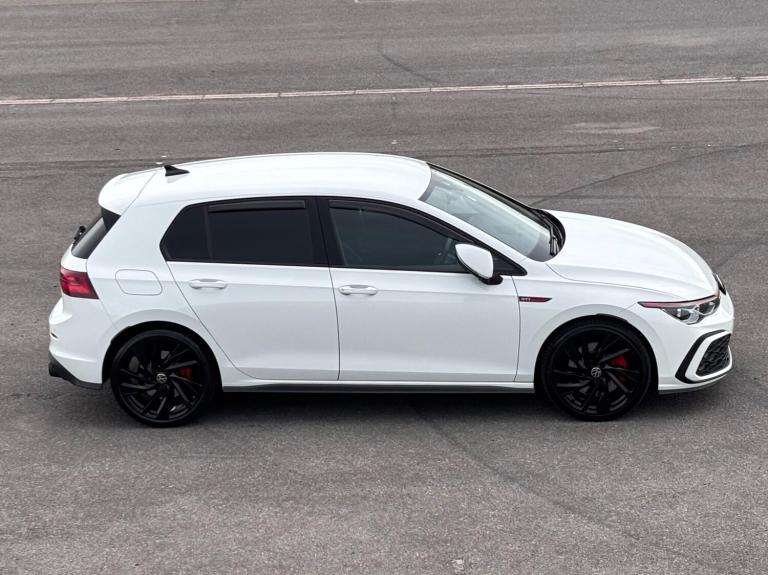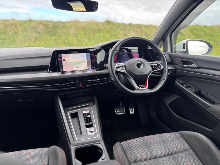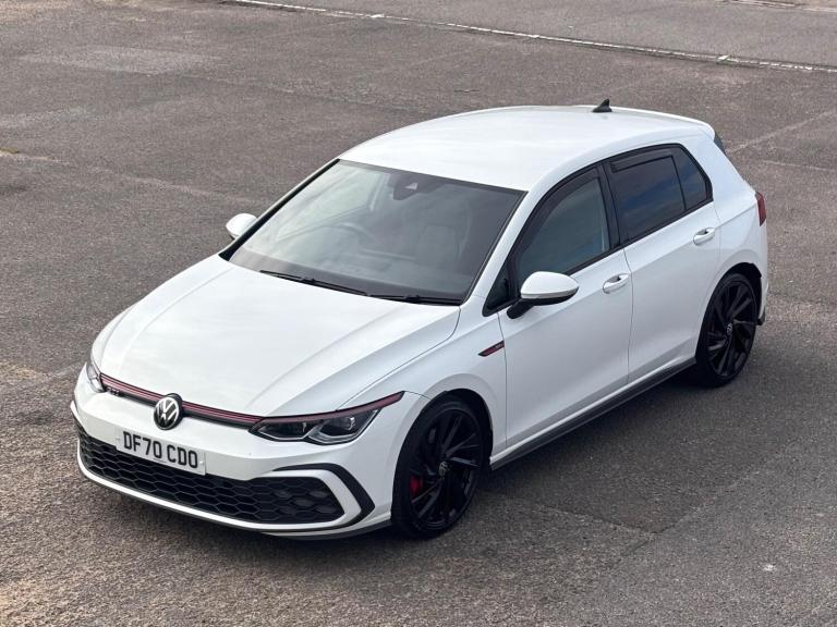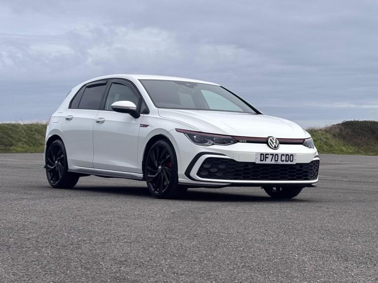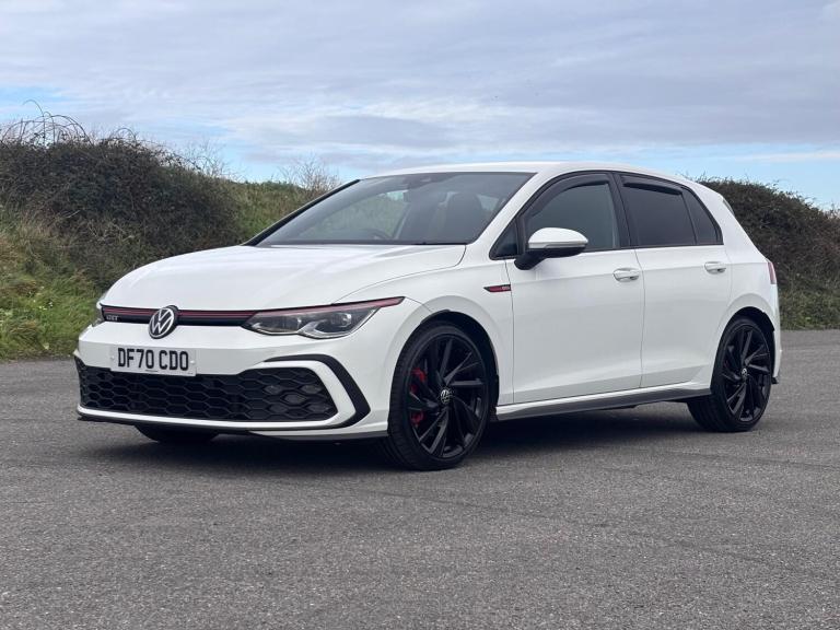 Pure White With Clark Plaid & Black Alcantara, 19'' 5 Twin Spoke Gloss Black Alloys, Privacy Glass, LED Matrix Headlamps, Front & Rear Park Assist, Ambient Lighting Heated Multi Function Black Leather D-Cut Steering Wheel With Paddle Shift, Adaptive Cruise Control, Voice Command, Digital Cockpit Dashboard, Touchscreen Media Interface, Apple Car Play, Satellite Navigation, Bluetooth Connectivity, Wireless Phone Charging Pad, Air Con, Three Zone Climate Control, Smart Climate, Heated Front & Rear Windscreen, Drive Mode Select, Auto Start/Stop, Auto Hold, Clark Plaid & Alcantara Sports Seats With Red Stitch, Iso Fix Front & Rear Seats, Back Seat Foldable Armrest With Cupholders & Ski Hatch, Heated & Electric Folding Wing Mirrors, Sliding Centre Armrest With Storage, Front Cup Holders, x2 USB-C, 12v Port, x2 Keys, Full Service History. Stunning Example! This 2020 Volkswagen Golf TSI GTI presents a compelling blend of performance and advanced technology. As a Euro 6 compliant model, it features a potent 2.0 litre petrol engine, delivering an impressive 0-62mph acceleration in just 6.2 seconds. The GTI trim is equipped with IQ Light LED Matrix Headlights, offering dynamic cornering for enhanced visibility, and the Discover Navigation System, complete with Bluetooth connectivity. For driver convenience, Adaptive Cruise Control is included, alongside a heated, leather wrapped multi-function sports steering wheel with paddle shift. Parking is made easier with front and rear parking sensors.Beyond its dynamic capabilities, this Golf GTI offers practical advantages, including generous boot space for all your needs. The inclusion of features like the IQ Light LED Matrix Headlights and Adaptive Cruise Control demonstrates a higher specification compared to many other vehicles in its class, providing a more sophisticated and comfortable driving experience. The heated steering wheel adds an extra touch of comfort during colder journeys, further enhancing its appeal.