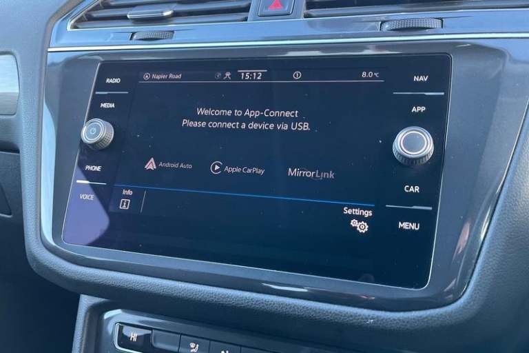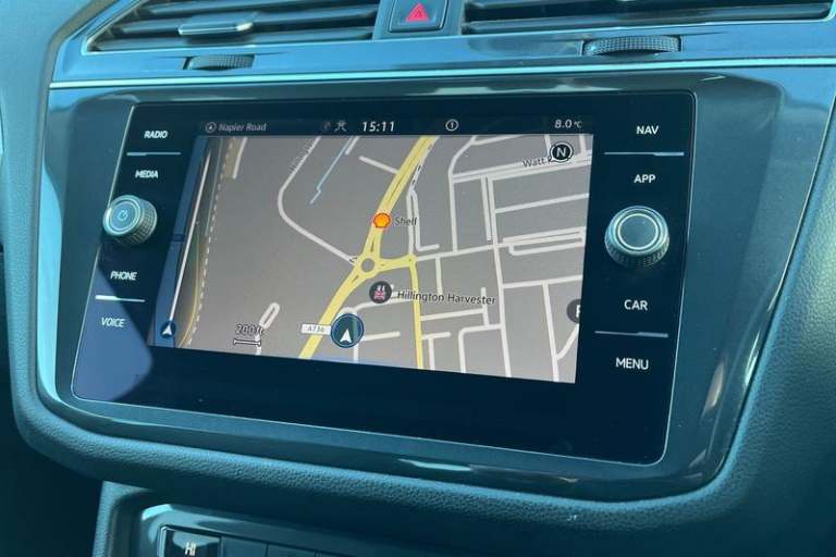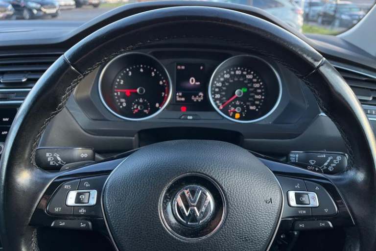2D/3D map view, Adaptive cruise control, Bluetooth phone integration system, Car information display, Driver alert system with fatigue detection, Front assist, radar sensor controlled distance monitor, city emergency braking + predictive pedestrian protection, Instrument cluster, Lane assist, Lights on warning, Low washer fluid warning light, Multifunction colour display, Outside temperature display, Service interval indicator, Speed limiter, Start/Stop function, Warning sound and light for doors and tailgate open, We Connect Go Dongle, Auto dimming interior mirror, Automatic activation of hazard warning lights, Black grained lower door protectors with chrome inserts, Body colour door handles, Body colour door mirrors, Body coloured bumpers, Chrome side window surrounds, Chrome trimmed radiator grille, Coming/leaving home lighting function, Dusk sensor + auto driving lights, Electrically heated and foldable door mirrors, door mirror puddle lights and reverse activated kerb view adjustment on passenger's door mirror, Front air intake with chrome strip, Front and rear electric windows, Heated rear window, High level 3rd brake light, LED rear number plate lights, Left and right chrome effect trapezoid dummy exhaust tailpipe surrounds, Rain sensor windscreen wipers, Rear tinted glass from B-pillar backwards approx 65% tinted, Rear windscreen washer and wiper with interval delay, Silver anodised roof rails, Windscreen wipers/ intermittent wipe + 4 position delay, 12V socket in