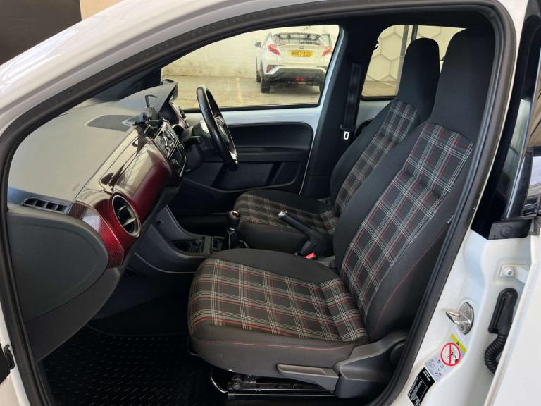Introducing the Volkswagen Up! – the compact car that packs a punch! With its sleek design and sporty flair, this Volkswagen Up! 1.0 Up GTi 5dr is the perfect blend of style and performance. Having clocked just 42,758 miles, this gem is ready to take you on countless adventures. Finished in a striking Pure White with a contrasting Black Roof, it’s sure to turn heads wherever you go. The Volkswagen Up! is not just about looks; it’s about comfort too. Enjoy the added luxury of front passenger seat height adjustment, ensuring every journey is as comfortable as it is exciting.Whether you’re navigating city streets or cruising the countryside, the Volkswagen Up! delivers a dynamic driving experience that’s both fun and efficient. Don’t miss your chance to own this exceptional vehicle. Experience the thrill of the Volkswagen Up! today!