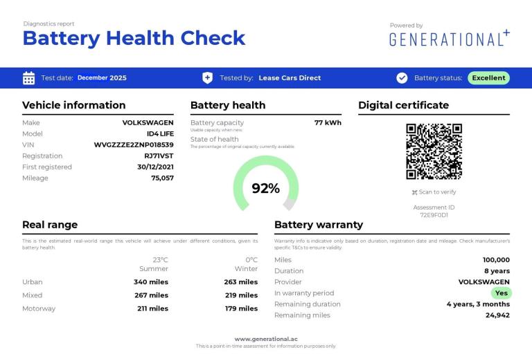 Posting for 9+ years2021 71 REG VOLKSWAGEN ID4 - 77 kWh - LIFE PRO PERFORMANCE - ELECTRIC - 92% SOH