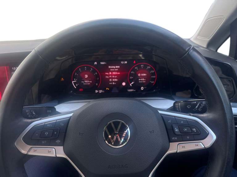 .Discover this exceptional 2021 Volkswagen Golf TSI Life, boasting an incredibly low mileage of just 12,000 miles, making it a standout choice for its age. This Euro 6 compliant model is powered by an efficient 1.5 litre petrol engine and features the convenient Mobile Phone Interface with Wireless Inductive Charging, ensuring your devices stay powered up on the go. Experience impressive performance with a swift 0-62mph acceleration time of 8.5 seconds, a figure that demonstrates its capability compared to many other vehicles in its class. Furthermore, its excellent fuel economy of 51 miles per gallon highlights its efficiency, offering a cost effective driving experience. This Golf TSI Life combines practicality with a refined driving experience..Adaptive cruise control (ACC) with speed limiter and front assist (reacting to vehicles pedestrians and cyclists), Car2X communication, Digital cockpit pro - 10.25'' high resolution TFT dash display screen with customizable menus and information, Driver alert system, Dynamic road sign display, eCall - Emergency call service for SOS calls to emergency response, Lane assist, Mobile phone interface with wireless inductive charging function, Power assisted speed sensitive steering, Speedo, rev counter, electronic odometer, trip, service interval display, exterior temperature and fuel gauge, Start/Stop function, Warning buzzer and light for front seatbelts unfastened, Wireless app connect, Petrol Particulate Filter, XDS electronic differential lock for improved traction and handling, Premium USB cable in choice of either Apple or Android smartphone compatibility, Ambient lighting, exterior illuminated styling elements at the sides, Auto dimming rear view mirror, Automatic headlamp activation with Coming home and Leaving home feature, Body colour bumpers, Body colour door handles, Body colour door mirrors with integrated indicators, Body colour rear roof spoiler, Electrically heated and adjustable door mirrors with memory feature, Front and rear electric windows, Heat insulating glass windscreen, Heated rear windscreen, High level 3rd brake light, Highway light, LED License plate illumination, Rain sensor, Rear fog light on one side and reversing lights on both sides, Rear lights incorporating LED technology, Rear windscreen washer and wiper with interval delay, Welcome light, 10 colour interior ambient lighting, 12V socket in front centre console, 12V socket in luggage compartment, 3 rear head restraints, Centre