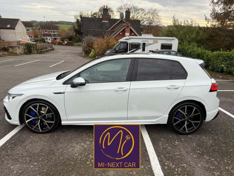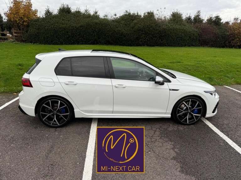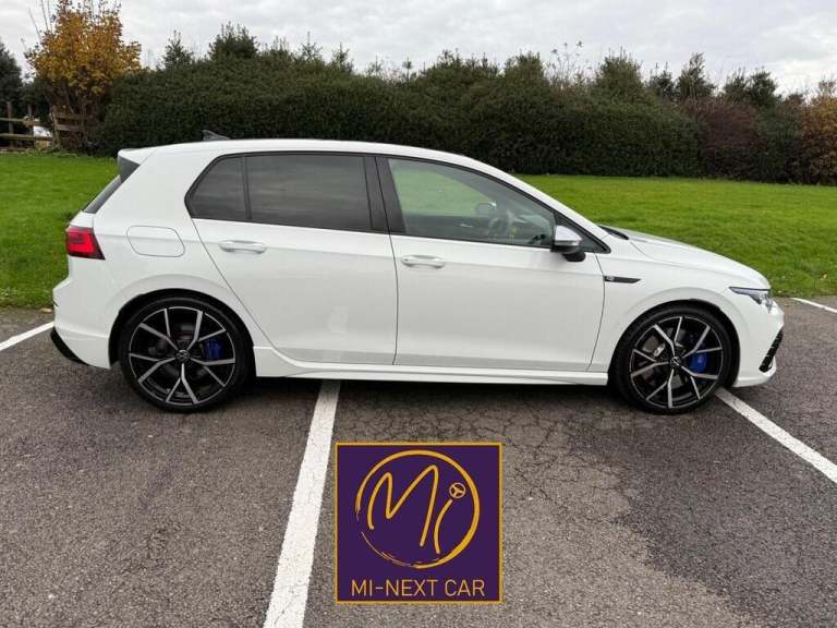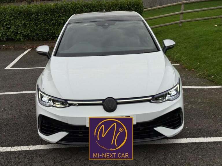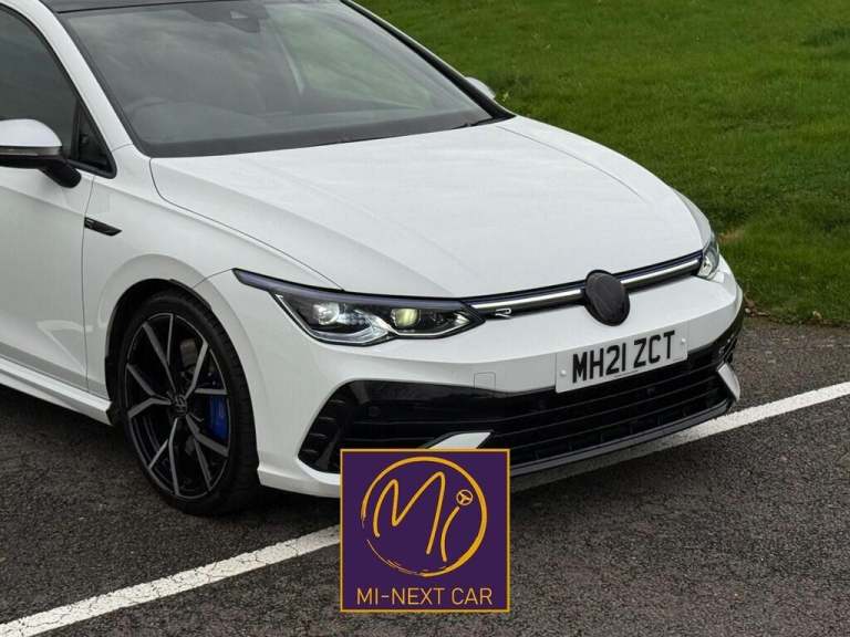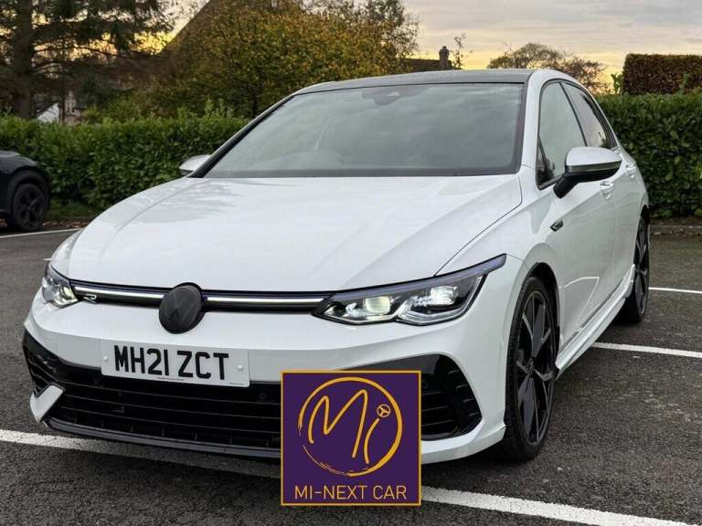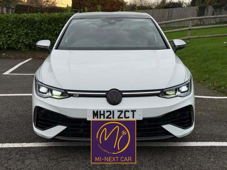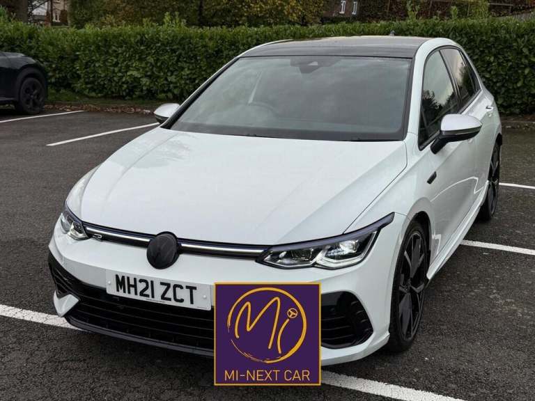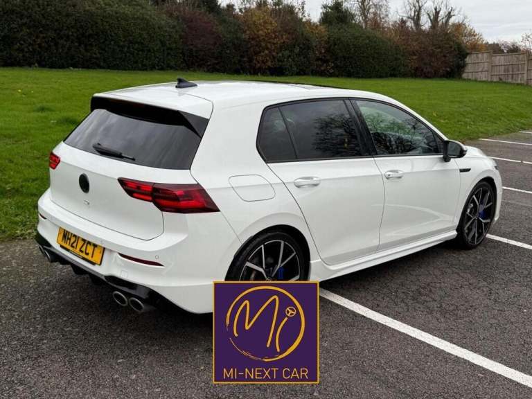 2021 Volkswagen Golf R TSI Panoramic Roof 20,000 Miles Full Service History 19'' Estoril Alloy WheelsThis outstanding 2021 Volkswagen Golf R TSI offers a rare opportunity to own a low-mileage, high-spec example with just 20,000 miles. Presented in excellent condition, this Euro 6compliant model delivers exceptional performance thanks to its 2.0-litre petrol engine and 4MOTION four-wheel drive, making it both engaging and practical for everyday use.Full Service History:Jul 2023 9,000 miles: Air-con service + brake fluid changeJun 2024 15,000 miles: Minor serviceJul 2025 19,000 miles: Major service + air-con service + brake fluid changeA major highlight of this car is the factory-option 19-inch Estoril diamond-turned alloy wheels, the same striking design seen on higher-spec models. These wheels perfectly complement the cars performance styling and significantly enhance its road presence.Inside, youll find a heated leather-trimmed three-spoke multifunction steering wheel with R badging and touch-sensitive controls, dual-zone climate control, keyless entry, and push-button start, offering excellent comfort and convenience. The desirable panoramic roof further enhances the premium feel of the cabin.Performance is a key strength of the Golf R, accelerating from 062 mph in just 4.7 seconds, providing an exhilarating and highly responsive driving experience.Practical touches include rear parking sensors for easy manoeuvring, along with adaptive cruise control for more relaxed long-distance driving.Overall, this Golf R combines low mileage, full history, upgraded 19'' Estoril alloys, premium features, and impressive performance making it an exceptional example for any enthusiast or buyer seeking a well-maintained, high-spec hot hatch.