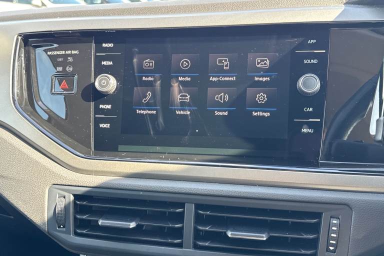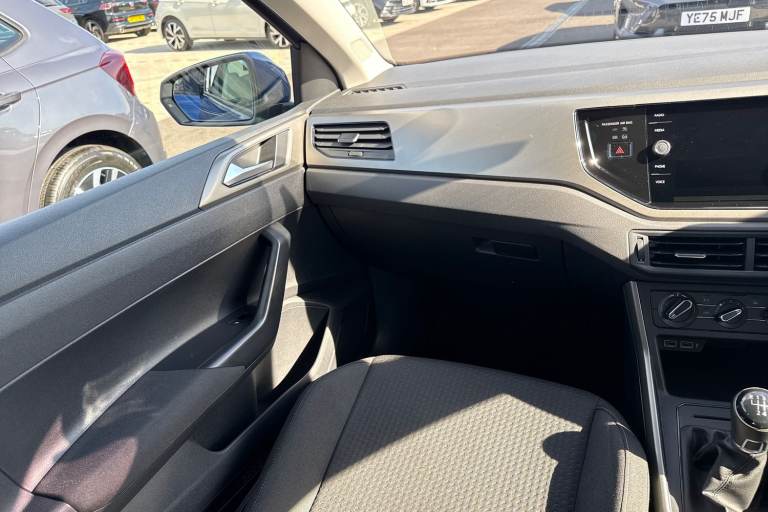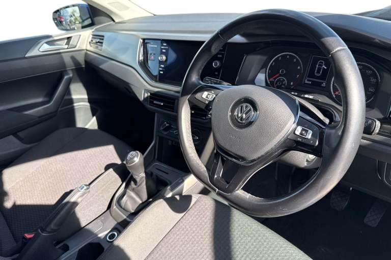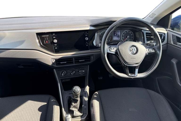 Drive in style and confidence with this Volkswagen Polo 1.0 TSI 95 Match, finished in vibrant Reef Blue Metallic. Its eye-catching exterior is complemented by rear tinted glass and front fog lights with static cornering function from the Match Pack, giving it a modern, sporty presence that stands out on every street. Sitting on 15"" Seyne black diamond-turned alloy wheels, this Polo combines style and practicality in perfect harmony. Inside, the cabin is thoughtfully designed for comfort and convenience. The Titanium Black interior features manually adjustable front seats with lumbar support, ensuring a comfortable drive for both short trips and longer journeys. A multifunction leather steering wheel with leather-trimmed gear knob and handbrake adds a touch of premium feel to every drive. Entertainment and connectivity come as standard with the Composition Media infotainment system, offering DAB digital radio, Bluetooth, App-Connect, and six speakers for a rich audio experience. Two front USB ports keep your devices charged and connected on the go, making every journey seamless and enjoyable. Practicality is a highlight, with front and rear parking sensors for easy manoeuvring, a full-size spare wheel, and anti-theft wheel bolts for peace of mind. Safety is reinforced with a comprehensive alarm system and SAFELOCK remote central locking, ensuring your Polo is secure at all times. Compact, efficient, and brimming with features, this Volkswagen Polo Match is ideal for driv...