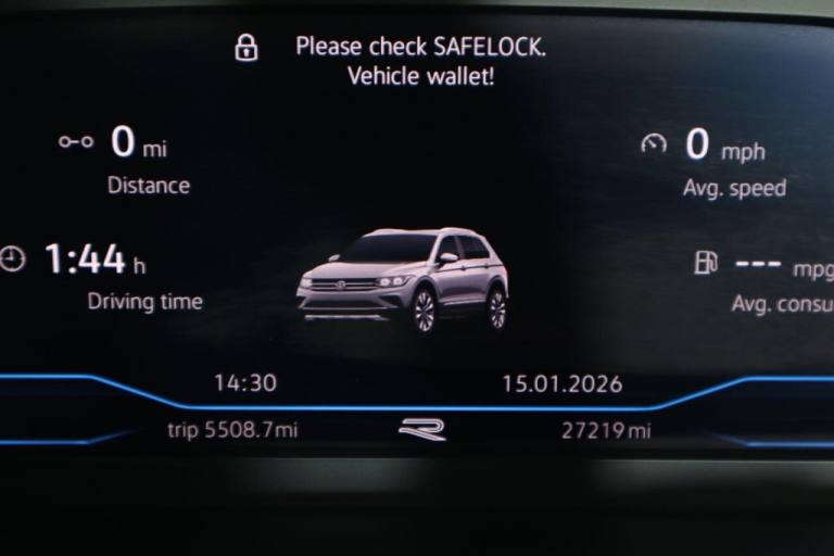 This 2021 Volkswagen Tiguan TSI R-Line presents an exceptional ownership proposition with its remarkably low mileage of just 27,219 miles, having been cherished by only one owner. As a Euro 6 compliant model, it features a responsive 1.5 litre petrol engine and the sporty R-Line trim, enhancing its already stylish design. This particular example benefits from the Assistance Pack Plus, incorporating Blind Spot Assistance and front and rear parking sensors for confident manoeuvring. The convenience continues with a Dusk Sensor for automatic headlights and a 3Zone Electronic Air Conditioning system, ensuring comfort for all occupants. The Tiguan R-Line offers a compelling blend of performance and practicality, accelerating from 0 to 62mph in a swift 9.2 seconds, demonstrating its capability. Its generous boot space is a significant advantage for families or those needing ample storage, setting it apart from many other vehicles in its class. The inclusion of Side Assist with Rear Traffic Alert further underlines its advanced safety features, providing peace of mind on every journey. This well maintained and thoughtfully equipped Tiguan is ready for its next adventure..12V Socket in Centre Console in Storage Area, 12V Socket on Rear of Front Centre Armrest, 20in Alloy Wheels - Misano - Black - Diamond-Turned Surface, Adaptive Cruise Control - ACC with Predictive Cruise Control, Airbags, Ambient Lighting Pack, App-Connect, Assistance Pack Plus, Automatic Coming-Leaving Home Lighting Function, Automatic Dimming Rear View Mirror, Automatic Hazard Lights Activation Under Emergency Braking, Black Grained Lower Door Protectors with Chrome Insert, Black Rooflining, Body Coloured Bumpers and Door Handles, Body-Coloured Roof Spoiler - Rear, Chrome Plated Electric Mirror Adjustment Switch Surround, Chrome Plated Electric Window Button Surrounds, Chrome Side Window Surrounds, Chrome Trim - Twin Trapezoid Styling Elements on Lower Bumper - Left and Right, Cup Holders - Front x2, Decorative Inserts Carbon Grey in Dash and Front Door Trim Panels, Digital Cockpit Pro, Discover Media Navigation Infotainment System including Streaming and Internet, Driver Alert System - Fatigue Detection, Driver Profile Selection - Choice of Three Settings - Eco - Normal and Sport Modes, Drivers and Passengers Safety Optimised Head Restraints, Dusk Sensor - Automatic Driving Lights, Electric Windows - Front and Rear, Electrically Heated - Adjustable and Foldable Door Mirrors with Memory, Electronic Engine Immobiliser, Front Air Intake with Chrome Strip, Front Assist with City Emergency Braking System and Pedestrian Monitoring, Front Footwell Illumination, Front Passengers Seat Folding Backrest, Glovebox, Heated Front Seats, Heated Leather Trimmed Three Spoke Multifunction Capacitive Touch-Sensitive Steering Wheels and Gear Knob, Heated Rear Window, Heated Windscreen Washer Jets, Height and Reach Adjustable Steering Wheel, High Level 3rd Brake Light, Instrument Lighting - White Adjustable Panel Illumination, Interior Light Delay, Isofix Child Seat Preparation - Easy-Fit - For 2 Outer Rear Seats, Keyless Entry, LED Plus Self-Levelling Dipped and Main Beam Headlights, LED Rear Number Plate Lights, Lane Assist with Road Edge Recognition, Load Lashing Points x4 in Luggage Compartment, Load Through Provision with Two Cup Holders when Folded Down, Luggage Compartment Cover - Removable, Luggage Compartment Light, Luggage Net, Park Assist, Parking Sensors - Front and Rear, Power Assisted Steering - Speed Sensitive, Proactive Occupant Protection, Progressive Steering, R-Line Styling Pack, Radiator Grille - Chrome Trim, Rain Sensor, Rear Wash Wipe with Intermittent