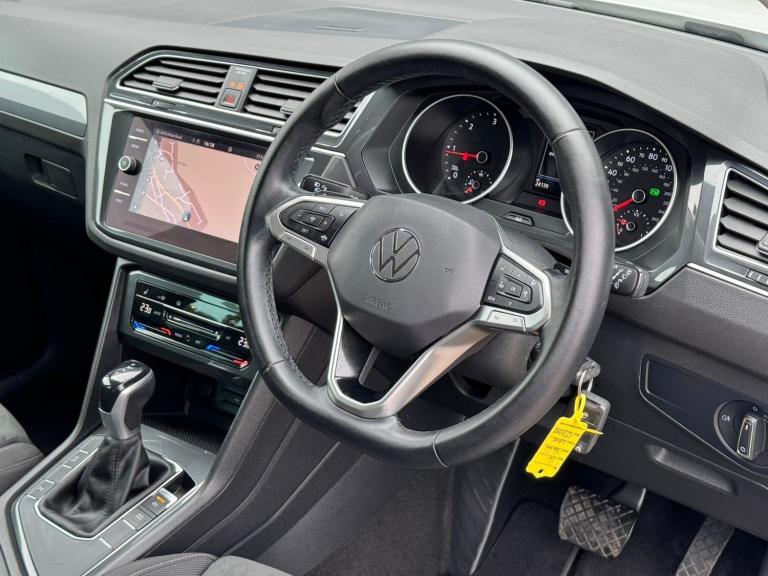 With only 23,000 miles on the clock, this 2021 Volkswagen Tiguan is offered with full service history and a clear vehicle history check. This car is the Life trim of the TDI Life variant, equipped with a 2.0L diesel engine and compliant with Euro 6 emission standards. The vehicle will be supplied with 12 months MOT. Parking is made easy thanks to front and rear parking sensors, including parking assistance. Stay connected with App-Connect, which includes Android Auto and Apple CarPlay. Enjoy enhanced visibility with LED self-levelling dipped and main beam headlights, complemented by automatic driving lights activated by the dusk sensor. The vehicle also features 3Zone electronic air conditioning with automatic air recirculation.This Tiguan stands out with its fuel economy, achieving around 50 mpg, which means fewer trips to the petrol station. It also falls within a low insurance group, potentially saving you money on your premiums. The vehicle boasts a large boot space, offering practicality for families or anyone needing extra room. Furthermore, its low CO2 emissions mean you'll be contributing less to pollution compared to similar vehicles.