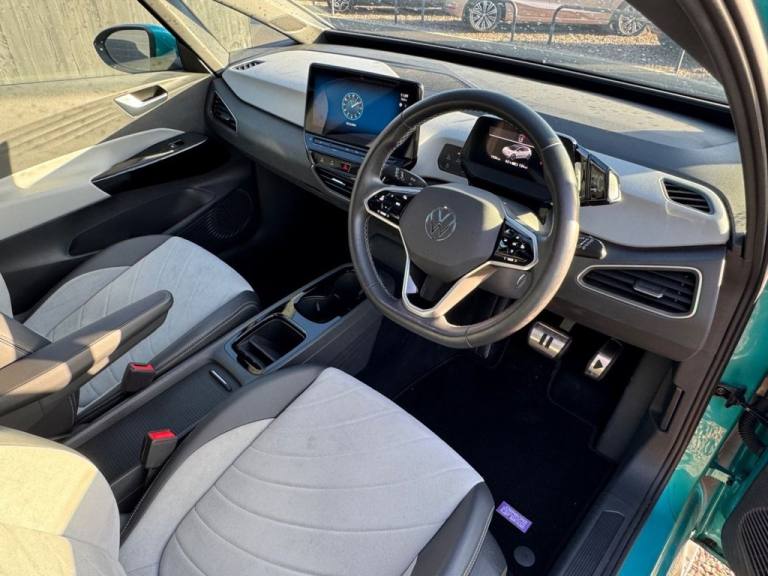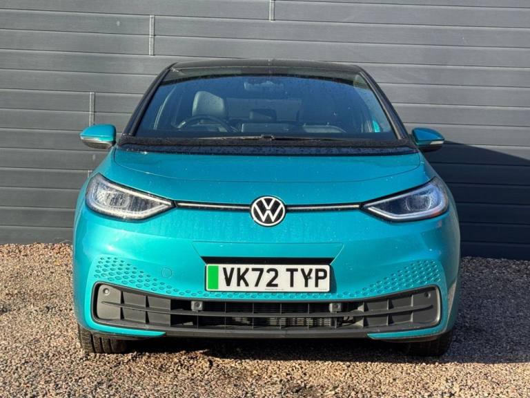 With a national parts and labour warranty, a pre sale service, and 12 month MOT. Finished in Turquoise, 1/2 Black & Grey leather, Heated front seats, Dual climate, Auto lights, Adaptive cruise control, Power folding mirrors, Heated mirrors, Drive mode, Apple/Android, DAB, USB, Bluetooth, Sat nav, Ambient lighting, Cooled front seats, Lane assist, Traffic sign recognition, Front assist, Pan roof, Keyless Entry & start, Front & Rear parking sensors, Isofix, 18" alloys, 1 Owner, 2 Keys, 1,900 miles from new, AA Cars 5 day driveaway insurance available and free 12 months AA Cars basic breakdown cover with this car. Low rate finance available on this vehicle / month. Finance calculator and no obligation application on our website - [Website URL removed] Apply online today. Part exchange welcome and all major credit/debit cards accepted. 5 star extended warranty options available. We do not charge ANY admin fees for our sales. Only third party finance fees are passed on, Any finance arrange by ourselves will incur No admin fees. Open 7 days a week..Apple / Android, Lane Assist, Power Folding Mirrors, Drive select, Adaptive Cruise Control, Makena Turquoise with Black Roof, 18in Alloy Wheels - East Derry, 10in Infotainment System, 18in Steel Wheels - Aero, ABS - Anti-Lock Braking System, Adaptive Cruise Control ACC including Front Assist - Radar Sensor Controlled Distance - Monitoring System - City Emergency Braking System - Cruise Control and Speed Limiter, Airbag - Front Centre, Airbags - Curtain Front, Airbags - Driver, Airbags - Front Side, Airbags - Passenger, Armrest Integrated into Front Seats, Assistance Pack, Black Roof, Body Coloured Bumpers - Door Handles and Door Mirrors with Integrated Indicators, Car2X Technology, Comfort Package Plus, DAB Digital Radio, Design Package Plus, Digital Dashboard, Driver Alert System, Electric Windows - Front and Rear, Electronic Parking Brake with Auto Hold Function, Exterior E-Sound, Free WeConnect Start for First 3 Years, Heated Rear Window, ID Light, Infotainment Package, Interior Alarm, Interior Ambient Lighting - 10 Colours, Lane Assist, Mode 3 - 32-AMP - 7.2kW Charging Cable for Charging at Public Charge Points, NCAP Pack - Forward Collision Warning - Extended and Proactive Pedestrian Protection, Natural Voice Control, Parking Sensors - Front and Rear, Power Assisted Steering - Speed Sensitive, Remote Tailgate Unlocking, Security and Service - SOS Buttons, Special WeCharge Conditions for ID 3 Customers within First 3 Years, We Connect ID App, Winter Driving Mode, Wireless App Connect