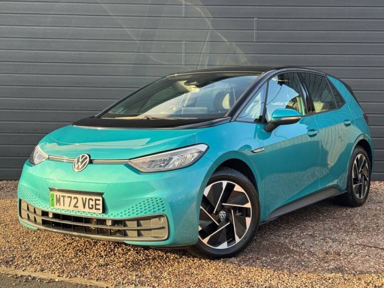 With a national parts and labour warranty, a pre sale service, and MOT, Finished in Turquoise, Keyless start, Power folding mirrors, Heated & cooled front seats, Heated steering wheel, Dual climate, DAB, USB, Apple/Android, Adaptive cruise control, Lane assist, Front assist, Ambient lighting, Auto lights, Auto wipers, Isofix, 18" alloys, 1 Owner, 2 Keys, 39,000 miles from new, AA Cars 5 day driveaway insurance available and free 12 months AA Cars basic breakdown cover with this car. Low rate finance available on this vehicle from £xx / month. Finance calculator and no obligation application on our website - [Website URL removed] Apply online today. Part exchange welcome and all major credit/debit cards accepted. 5 star extended warranty options available. We do not charge ANY admin fees for our sales. Only third party finance fees are passed on, Any finance arrange by ourselves will incur No admin fees. Open 7 days a week..Apple / Android, Adaptive Cruise Control, Lane Assist, Traffic Sign Recognition, Auto Lights & Auto Wipers, 1-Zone Climatronic, 10in Infotainment System, 18in Steel Wheels - Aero, ABS - Anti-Lock Braking System, Adaptive Cruise Control ACC including Front Assist - Radar Sensor Controlled Distance - Monitoring System - City Emergency Braking System - Cruise Control and Speed Limiter, Airbag - Front Centre, Airbags - Curtain Front, Airbags - Driver, Airbags - Front Side, Airbags - Passenger, All-LED Headlights with Reflector Technology, Armrest Integrated into Front Seats, Assistance Pack, Black Roof, Body Coloured Bumpers - Door Handles and Door Mirrors with Integrated Indicators, Car2X Technology, Comfort Package, DAB Digital Radio, Digital Dashboard, Driver Alert System, Electric Windows - Front and Rear, Electronic Parking Brake with Auto Hold Function, Exterior E-Sound, Free WeConnect Start for First 3 Years, Heated Rear Window, ID Light, Infotainment Package, Interior Alarm, Interior Ambient Lighting - 10 Colours, Lane Assist, Mode 3 - 32-AMP - 7.2kW Charging Cable for Charging at Public Charge Points, NCAP Pack - Forward Collision Warning - Extended and Proactive Pedestrian Protection, Natural Voice Control, Parking Sensors - Front and Rear, Power Assisted Steering - Speed Sensitive, Rear Tinted Glass, Remote Tailgate Unlocking, Security and Service - SOS Buttons, Special WeCharge Conditions for ID 3 Customers within First 3 Years, We Connect ID App, Winter Driving Mode, Wireless App Connect, 18in Alloy Wheels - East Derry, Makena Turquoise with Black Roof