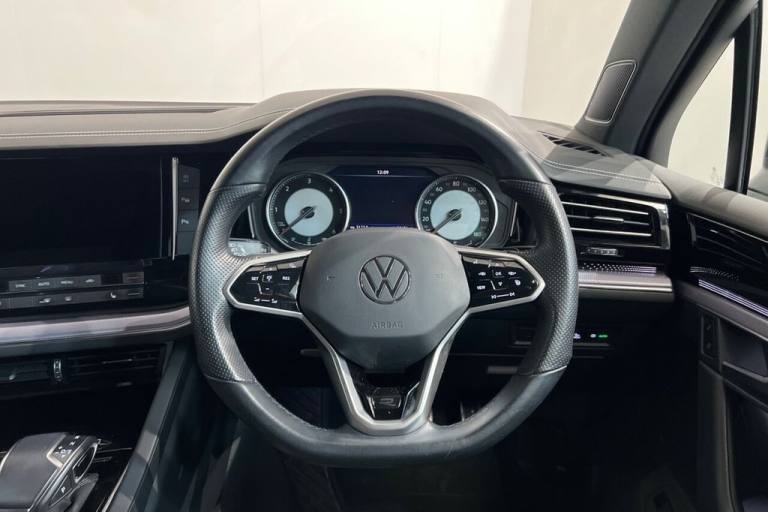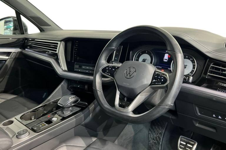 With only one owner and a clear vehicle history, this 2022 Volkswagen Touareg TDI V6 R-Line presents a superb ownership proposition. This Euro 6 compliant, four wheel drive SUV is powered by a robust 3.0 litre diesel engine, offering impressive performance with a 0-60mph time of just 7.6 seconds. Its MOT is valid until December 2026, and it boasts a low mileage of 25,600 miles for its age. The R-Line trim ensures a premium feel, complemented by a multifunction heated R-Line steering wheel with paddle shift and leather trim. This Touareg excels with its generous boot space, making it ideal for families or those needing ample storage. The advanced Park Assist system, featuring ultrasonic front and rear sensors with optical and audible warnings, simplifies manoeuvring. Inside, youll find a storage compartment in the front centre console for wireless smartphone charging, alongside a combined functionality of Apple CarPlay, Google Android Auto, and MirrorLink for seamless connectivity. The 4 zone electronic air conditioning with automatic air recirculation ensures comfort for all occupants. Furthermore, its low insurance group rating indicates it is more economical to run than many comparable vehicles, and with a towing weight of 3500 kg, it is exceptionally capable. Lifetime warranty available on this car, plus a £1,000 finance contribution when you part exchange. Voted UK Car Supermarket of the Year two years running, we offer 0% finance, part exchange, and lifetime warranties across our entire range. Every car is thoroughly inspected before sale and comes with a full history check, so you can buy with complete peace of mind. Buy with confidence on our best finance rates. Proud winners of the CarGurus Top-Rated Dealer 2022 and the MotoNovo Extra Mile Award. .20in Alloy Wheels - Braga, 4 USB Ports Located in Front Storage Compartment - Centre Armrest Compartment and 2 in the Rear Centre Console, 4 Zone Electronic Air Conditioning with Automatic Air Recirculation, 8 Speakers - Front and Rear - 4x20 Watt Output, Active Bonnet, Adaptive Cruise Control ACC Including Front Assist Radar Sensor Controlled Distance Monitoring System City Emergency Braking System Cruise Control and Speed Limiter, Alarm with Interior Protection - Back up Horn and Towing Protection, Ambient Lighting - White, Armrest - Front Centre with Storage Compartment, Audible and Visual Fatigue Detection System, Automatic Headlight Control, Automatic Slip-Control Electronic Differential Lock System to Improve Traction and Handling, Automatically Heated Washer Nozzles, Bluetooth Telephone Preparation for Hands Free Profile Enabled Telephones, Body Coloured R-Line Front and Rear Bumpers Side Skirts and Sills, Carpet Mats - Front and Rear, Central Locking System with Radio Remote Control with Keyless Go, Centre Console in High Gloss Black Finish, Chrome Side Window Surrounds, Chromed Tailpipe on the Left and Right - Integrated in the Bumper with Trapezoid Design, Combined Functionality of Apple CarPlay - Google Android Auto and MirrorLink, Curtain Airbag System for Front and Rear Seats with Side Impact Airbags for Front Seats, DAB Digital Radio, Decorative Inserts - R-Line Aluminium in Dash and Door Panels, Discover Pro Touch-Screen Nav-Radio System with Gesture Control and Integrated Voice Control, Door Mirrors - Body Coloured, Drivers and Front Passengers Airbags with Front Passenger Airbag Deactivation Switch, Drivers and Front Passengers Double Sun Visors with Illuminated Vanity Mirrors, Drivers and Passengers Safety Optimised Head Restraints - 2 Way Adjustable, Driving Profile Selection, Dynamic Headlight Range Control, Dynamic Road Sign Display, eCall for SOS Calls to Emergency Response Unit, Electrically Heated - Adjustable and Foldable Door Mirrors with Auto Dimming with Puddle Lighting, Electronic Parking Brake with Auto Hold Function, Emergency Call Service and Roadside Assistance Call, First Aid Kit and Warning Triangle, Front Three-Point Seat Belts with Height Adjustment and Seat Belt Tensioners, Full LED Headlights, Full LED Tail Lights, Grenadilla Black, Heat Insulating Glass In Side and Rear Windows, Heat Insulating Glass Windscreen, Heated Front Seats, Height and Reach Adjustable Steering Column, Instrument Cluster - Great Britain, ISOFI