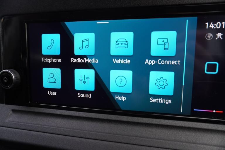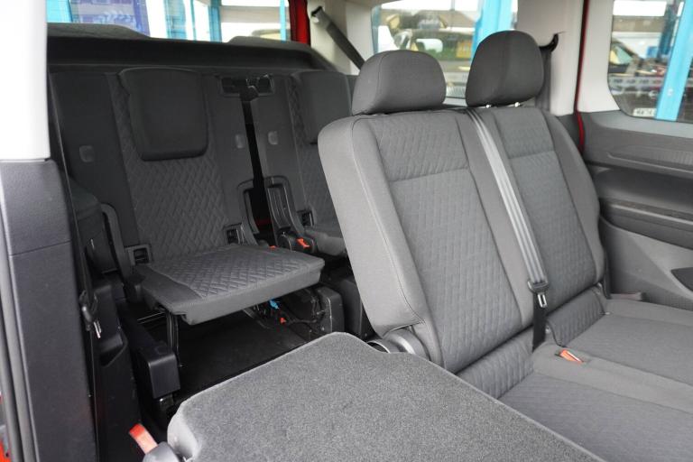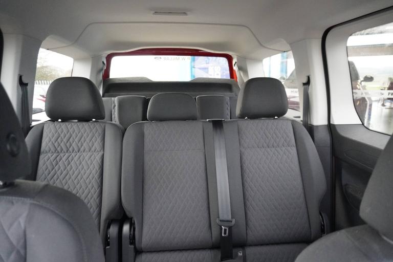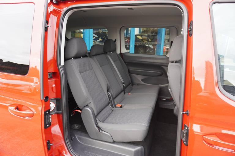 3-point seat belts in front with pretensioner and height adjustment, 3x3 point rear seatbelts, Anti-lock braking system (ABS), Automatic post collision braking system, Autonomous emergency braking front assist with pedestrian and cyclist monitoring, Brake assist, Child locks on rear doors, Curtain airbag for outer seats in rear, Direct tyre pressure monitoring system, Driver and front passenger airbag with front passenger airbag deactivation, Electric parking brake with auto hold function, Electronic brake force distribution, Engine drag torque control, ESP, First aid kit with warning triangle and safety vest, Front centre airbag, Power operated child safety locks, Seat belt reminder, Side and curtain airbag for driver and front passenger, Traction control system (TCS), AppConnect, Bluetooth mobile phone interface, Cruise control + speed limiter, Driver alert system, eCall emergency call system, Front and rear parking sensors, Gesture control, Lane keeping system, Multi function display, On board computer, Service interval indicator, Servotronic speed sensitive power steering, Start/stop system with regenerative braking, Tailgate with window, We connect plus preparation, Anti dazzle rear view mirror, Automatic hazard lights activation under emergency braking, Automatic headlight levelling system, Black roof rails, Body colour bumpers, Dimming breakaway interior rear view mirror, Electric front windows, Electrically adjustable and folding door mirrors, Fixed side window in load/passenger compartment, H7 twin halogen headlamps, Heat insulating windscreen, Heated door mirrors, Heated rear window, LED rear combination lights, Rear window wiper and washer system with intermittent control, Separate daytime running light, Silver sliding door rail, Solid paint, Third high level brake light, Twin near side and off side sliding doors, Windscreen wiper with variable intermittent delay and wash wipe system, 12V socket in passenger compartment, 5 standard interior lights in passenger compartment, Air conditioning - Climatic airconditioning system - manual in cab, Backrest release for front passenger seat, Carpet floor covering in cab, Carpet floor covering in passenger compartment, Centre console high with armrests adjustable, Centre console with 2 cupholders, Door and side trim panel in fabric, Electrically controlled heating system, Folding table on front seat backrests, Front head restraints, Front passenger seat foldable, Height adjustable head restraints, Isofix