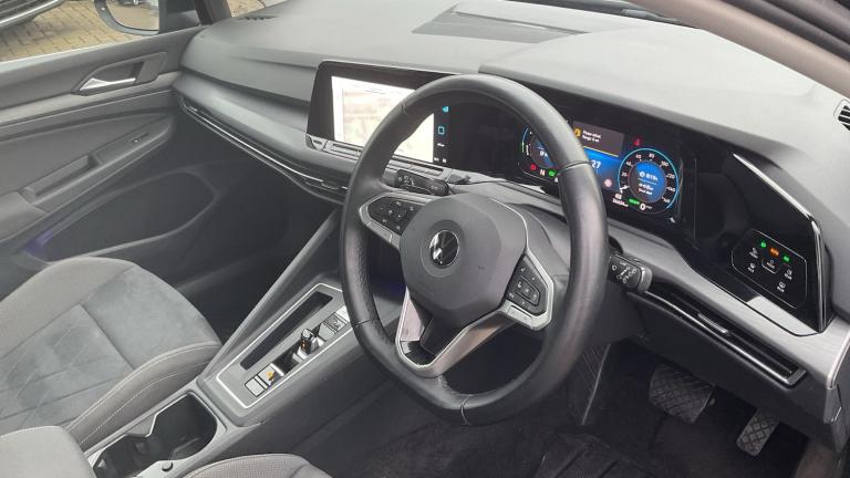 This new shape plug in hybrid Golf MK8 is a one owner vehicle which has a full service history, and it is absolutely stunning finished in Deep Black metallic paintwork.As standard, it comes with touch screen media with satellite navigation, Apple Car Play, Android Auto, Bluetooth and DAB radio, front and rear parking sensors, digital drivers cockpit, adaptive cruise control, lane assist, dual zone climate control with air conditioning, Matrix LED smart headlights, auto lights and wipers, front fog lights, dynamic indicators, 30 colour LED interior lighting, electronic handbrake, privacy glass, and much more.As a Volkswagen Approved used vehicle included is 1 year unlimited mileage Warranty, 1 year Roadside Assistance, independent vehicle history and mileage checks, comprehensive multi-point vehicle check, service history checks, plus 5 days complimentary Volkswagen Drive Away Insurance..Air Conditioning, Climate Control, Metallic Paint, Satellite Navigation, Alloy Wheels, DAB Radio, Bluetooth, Parking Sensors, Full Service History, USB, Park Assist, Manufacturer Approved, Adaptive cruise, Apple-Android Play, Auto Lights, Electric Folding Mirrors, Xenon Head Lights, Lane Keeping Assist, Pre Crash Prevention& Rain Sensors, Front + rear carpet mats, Rain sensor, Front and rear electric windows, Heated rear windscreen, Rear windscreen washer and wiper with interval delay, Heat insulating glass windscreen, ABS, Rear disc brakes, Front disc brakes, Electronic parking brake with auto hold, ESC (Electronic Stability Control), Wireless app connect, Car2X communication, USB-C ports in the front and rear centre console with increased charging performance, Lane assist, Driver alert system, Dynamic road sign display, Adaptive cruise control (ACC) with speed limiter and front assist (reacting to vehicles pedestrians and cyclists), Electronic engine sound