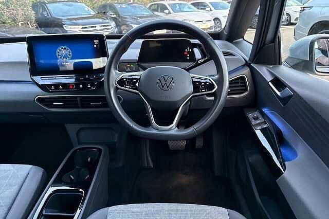 Rear window wiper, DAB radio, Voice control, Bluetooth, Central locking, Cruise control, LED daytime running lights, Electric windows, On-board computer, Rain sensor, ABS, Active brake assist, Adaptive cruise control, 1x Driver airbag, Alarm device, ESP, Immobiliser, Lane changing assistant, Rear wheel drive, Traction control, 5 seats, Divided back seats, ISOFIX Child seat fastener, Single-seater, 5 doors, Speed limit: 99 mph Paint - Metallic, Metallic - Scale silver Exterior Features, Front and rear electric windows, Heated rear window, Rain sensor, Rear wiper, Body colour door handles, Body coloured bumpers, Rear side wing doors, 3rd brake light, Separate LED daytime running lights which also perform the indicator function, Safety, Anti-lock braking system (ABS), Electronic parking brake with auto hold, Electronic Stability Programme (ESP), Traction control with on/off button, Adaptive cruise control including Front Assist, radar sensor controlled distance monitoring system, City emergency braking system,speed limiter, Driver alert system, Driver profile selection with personalisation, Front and rear parking sensors, Lane assist, Body coloured door mirrors with intergrated indicators, 3x3 point rear seat belts, Child locks on rear doors, Driver and passenger airbags, Front and rear curtain airbags, Side airbags, Tyre pressure monitor, Audio / Communications, Bluetooth connectivity, E-call, Natural voice control, Security and service (SOS buttons), Wireless app connect, DAB Digital radio, Touch control, Driver Convenience, Car2X technology, Remote tailgate unlocking, Miscellaneous, 10"" touch screen infotainment system, 5.3"" Digital dashboard display, BLIS (Blind spot information system), ID. Light, Trip computer, Exterior e-sound, Interior Features, 1 Zone climatronic, Fragment design cloth upholstery, Pause and play pedals, Pockets and smartphone pockets in seats, Reach + rake adjustable steering column, Packs, Comfort pack - ID.3, NCAP pack - ID.3, Trim, 3 seat bench in 2nd row, Folding rear seats, Front headrests, Isofix child seat anchor points, Rear headrests, Single front passenger seat, Standard seats, Security, Alarm, Immobiliser, Keyless Go, Remote central locking, Wheels, Tool kit, Tyre repair kit