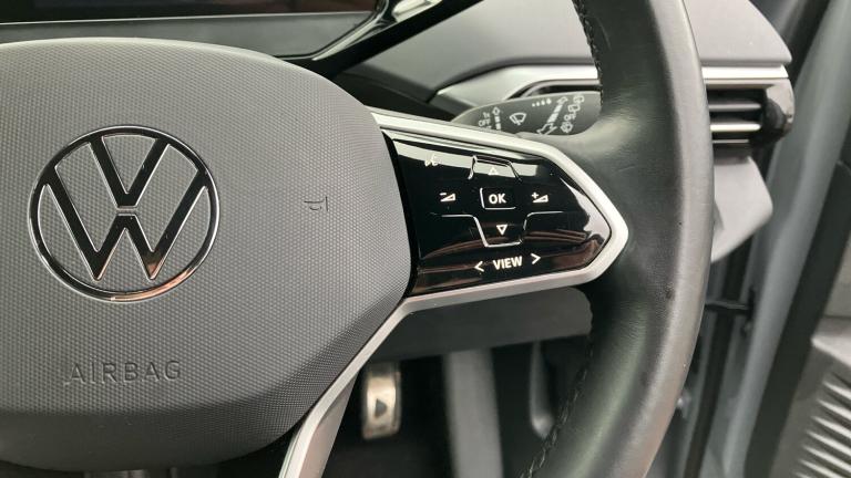 This pure electric family hatchback is a one owner vehicle which has a full service history, and it is absolutely stunning finished in Moonstone Grey gloss paintwork with black gloss wheels.As standard, it comes with touch screen media with satellite navigation, Apple Car Play, Android Auto, Bluetooth and DAB radio, reversing camera with front and rear parking sensors, digital drivers cockpit, adaptive cruise control, lane assist, heated seats, dual-zone climate control with air conditioning, keyless entry, auto lights and wipers, front fog lights, 30 colour LED interior lights, inductive wireless phone charging, heated steering wheel, heated windscreen, electronic handbrake, smart LED headlights, dynamic indicators, power folding wing mirrors, and much more.As a Volkswagen Approved used vehicle included is 1 year unlimited mileage Warranty, 1 year Roadside Assistance, independent vehicle history and mileage checks, comprehensive multi-point vehicle check, service history checks, plus 5 days complimentary Volkswagen Drive Away Insurance. If you purchase with a Solutions Personal Contract Plan (PCP) you will receive an upgrade to 2 years Warranty and 2 years Roadside Assistance..Air Conditioning, Climate Control, Satellite Navigation, Heated Seats, DAB Radio, Bluetooth, Parking Sensors, Full Service History, USB, Park Assist, Manufacturer Approved, Adaptive cruise, Keyless Entry-Push Button Start, Apple-Android Play, Rear Camera, Auto Lights, Electric Folding Mirrors, Xenon Head Lights, Lane Keeping Assist, Pre Crash Prevention& Rain Sensors, Front + rear carpet mats, Heated rear window, Front and rear electric windows, Acoustic glazing rear window and side windows darkened at the rear, Heated clear glass windshield, Rear wiper, Traction control, Front disc brakes, Electronic parking brake with auto hold, Anti-lock Braking System (ABS), Electronic Stability Programme (ESP), Wireless app connect, We Connect ID app, We Charge Go access, Telephone interface comfort with inductive charging function, Online service, with OCU, with head unit coding, without engine immobilizer interconnection, Driver alert system, Driver profile selection