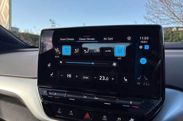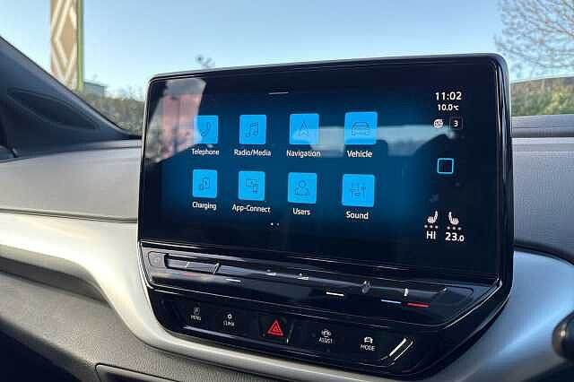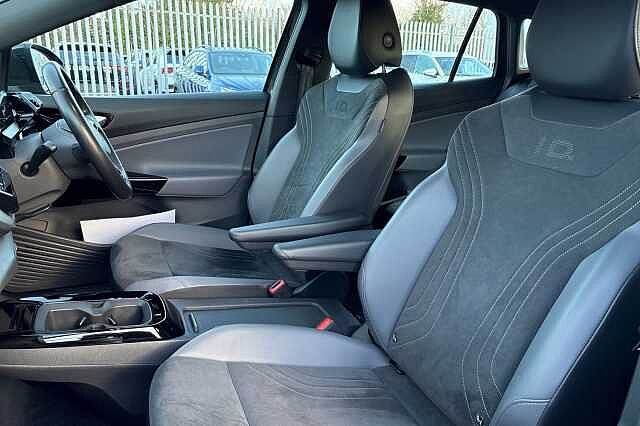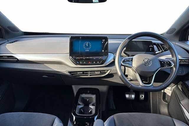 Rear window wiper, DAB radio, Voice control, Bluetooth, Central locking, Cruise control, daytime running lights, Electric windows, Electronically retractable wing mirror, Heated front seats, On-board computer, ABS, Adaptive cruise control, 4x Airbags (front + side airbags), ESP, Immobiliser, Lane changing assistant, Rear wheel drive, Traction control, 5 seats, Ambient lighting, Centre arm rest, Divided back seats, ISOFIX Child seat fastener, Leather, Single-seater, 5 doors, Speed limit: 99 mph Paint - Metallic, Metallic - Manganese grey, Trim - Cloth, Art velours microfleece cloth - Soul black/Platinum grey with Platinum grey/Soul black interior inserts Exterior Features, Acoustic glazing rear window and side windows darkened at the rear, Front and rear electric windows, Heated clear glass windshield, Heated rear window, Rear wiper, Body colour door handles, Body coloured bumpers, Rear side wing doors, Daytime running lights, Third brake light, Safety, Anti-lock braking system (ABS), Electronic parking brake with auto hold, Electronic Stability Programme (ESP), Front disc brakes, Traction control, Adaptive cruise control ACC stop and go including speed limiter, Driver alert system, Driver profile selection, Dynamic road sign display, Emergency call control unit with eCall, Multifunction camera, Automatic dimming interior rear view mirror, Body coloured door mirrors with intergrated indicators, Power adjustable, heated and folding wing mirrors, 3x3 point rear seat belts, Child safety lock, Curtain airbag system for front and rear passengers, Driver and front passenger airbag with front passenger airbag deactivation, First aid kit with warning triangle and safety vest, Proactive passenger protection system in combination with front assist, Seat belt reminder (Japan design), Seatbelt tensioners in front and rear outside, pyrotechnic belt end fitting tensioners at the front, Side airbag in front with curtain airbag and interaction airbag in front, Single torn horn, Tyre pressure monitor, Interior Features, Front + rear carpet mats, Electric auxiliary air heater, Art Velours microfleece cloth upholstery, Center console and armrests in the front seats, Illuminated smartphone storage compartment, Play and Pause brake and accelerator pedals, Pockets and smartphone pockets in seats, Reach + rake adjustable steering column, Sides,rear and armrest in leatherette, Storage compartments in driver and front passenger, 30 colour ambient lighting, Sun visors with illuminated vanity mirrors, Audio / Communications, Natural voice control, Online service, with OCU, with head unit coding, without engine immobilizer interconnection, Telephone interface comfort with inductive charging function, We Charge Go access, We Connect ID app, Wireless app connect, Bluetooth connectivity including audio streaming, DAB Digital radio, Radio, Soundsystem of six loudspeakers with 140 watt output with two full range speakers in the rear doors and 2 way speaker system installed in front area, Touch control, Driver Convenience, Car2X high variant, Remote tailgate unlocking, Miscellaneous, 5.3"" Digital dashboard display, BLIS (Blind spot information system), Comfort telephony with LTE and wireless charging, Emergency call service, Hand brake/low brake fluid level warning light and inscription, ID. Light, Trip computer, Warning buzzer and light for front seatbelts unfastened, Exterior e-sound, Standard electronic engine sound actuator, Trim, Comfort dashboard, 3 seat bench in 2nd row, Asymmetric split folding rear seat backrest with load through hatch and center armrest, 2 beverage holders, Child seat anchor for child seat system i-Size, 2x top tether and child seat anchor in front on front passenger side, Front headrests, Heated front seats, Three rear head restraints, Packs, Comfort pack - ID.4 Life, Driving assistance pack - ID.4, Security, Anti-theft alarm system with interior monitoring, backup horn, and towing protection, Immobiliser, Remote central locking with 2 remote keys, Vehicle Charging, Mode 3 32-amp / 7.2kW charging cable for charging at public charge points, Wheels, Tool kit, Tyre mobility kit
