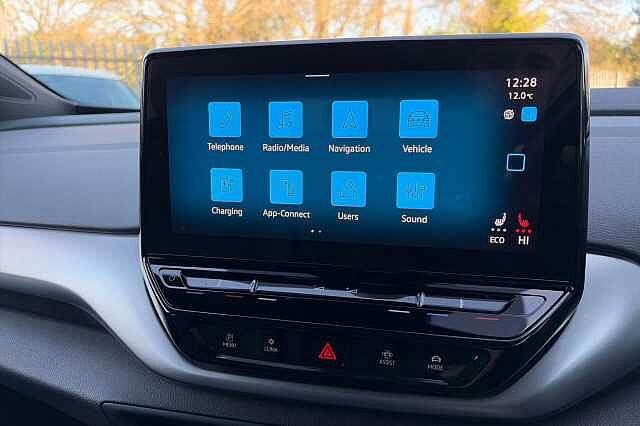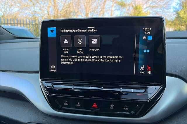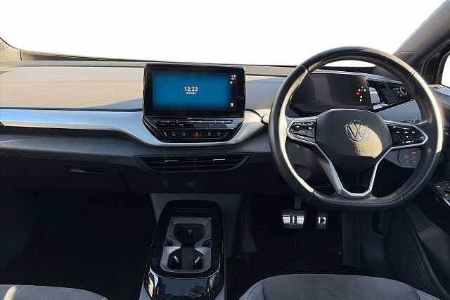 Rear window wiper, DAB radio, Voice control, Air conditioning, Bluetooth, Central locking, Cruise control, Electric windows, Electronically retractable wing mirror, Heated front seats, Heated steering wheel, On-board computer, Rain sensor, USB, ABS, Adaptive cruise control, 4x Airbags (front + side airbags), ESP, Immobiliser, Lane changing assistant, Multifunctional steering wheel, Rear wheel drive, Traction control, 5 seats, Ambient lighting, Centre arm rest, Divided back seats, ISOFIX Child seat fastener, Leather, Leather steering wheel, Single-seater, 5 doors, Speed limit: 99 mph Paint - Metallic, Metallic - Manganese grey, Trim - Cloth, Art velours microfleece cloth - Soul black/Platinum grey with Platinum grey/Soul black interior inserts Exterior Features, Acoustic glazing rear window and side windows darkened at the rear, Front and rear electric windows, Heated clear glass windshield, Heated rear window, Heated washer nozzles in front, Laminated safety glass windshield, heated (w/o wires), infrared-reflecting windshield, sound-insulating, Rain sensor, Rear wiper, Body colour door handles, Body coloured bumpers, Rear side wing doors, Third brake light, Safety, Anti-lock braking system (ABS), Electronic parking brake with auto hold, Electronic Stability Programme (ESP), Front disc brakes, Traction control, Adaptive cruise control ACC stop and go including speed limiter, Driver alert system, Driver profile selection, Dynamic road sign display, Emergency call control unit with eCall, Multifunction camera, Automatic dimming interior rear view mirror, Body coloured door mirrors with intergrated indicators, Power adjustable, heated and folding wing mirrors, 3x3 point rear seat belts, Child safety lock, Curtain airbag system for front and rear passengers, Driver and front passenger airbag with front passenger airbag deactivation, First aid kit with warning triangle and safety vest, Proactive passenger protection system in combination with front assist, Seat belt reminder (Japan design), Seatbelt tensioners in front and rear outside, pyrotechnic belt end fitting tensioners at the front, Side airbag in front with curtain airbag and interaction airbag in front, Single torn horn, Tyre pressure monitor, Interior Features, Front + rear carpet mats, Electric auxiliary air heater, 2 USB-C ports in the front, 2 USB-C charging sockets on the center console in the rear, Art Velours microfleece cloth upholstery, Backrest with ID perforation, Center console and armrests in the front seats, Heated steering wheel, Illuminated smartphone storage compartment, Leather wrapped multifunction steering wheel with decorative aluminum inserts, Play and Pause brake and accelerator pedals, Pockets and smartphone pockets in seats, Reach + rake adjustable steering column, Sides,rear and armrest in leatherette, Storage compartments in driver and front passenger, Variable center console with changeable inserts for cup holders and storage compartments, 30 colour ambient lighting, Sun visors with illuminated vanity mirrors, Audio / Communications, Natural voice control, Online service, with OCU, with head unit coding, without engine immobilizer interconnection, Telephone interface comfort with inductive charging function, We Charge Go access, We Connect ID app, Wireless app connect, Bluetooth connectivity including audio streaming, DAB Digital radio, Radio, Soundsystem of six loudspeakers with 140 watt output with two full range speakers in the rear doors and 2 way speaker system installed in front area, Touch control, Driver Convenience, Car2X high variant, Remote tailgate unlocking, Miscellaneous, 5.3"" Digital dashboard display, BLIS (Blind spot information system), Comfort telephony with LTE and wireless charging, Emergency call service, Hand brake/low brake fluid level warning light and inscription, ID. Light, Trip computer, Warning buzzer and light for front seatbelts unfastened, Exterior e-sound, Standard electronic engine sound actuator, Trim, Comfort dashboard, 3 seat bench in 2nd row, Asymmetric split folding rear seat backrest with load through hatch and center armrest, 2 beverage holders, Child seat anchor for child seat system i-Size, 2x top tether and child seat anchor in front on front passenger side, Front headrests, Heated front seats, Three rear head restraints, Packs, Comfort plus pack - ID.4, Design plus pack - ID.4, Driving assistance pack - ID.4, Security, Anti-theft alarm system with interior monitoring, backup horn, and towing protection, Immobiliser, Remote central locking with 2 remote keys, Vehicle Charging, Mode 3 32-amp / 7.2kW charging cable for charging at public charge points, Wheels, Tool kit, Tyre mobility kit