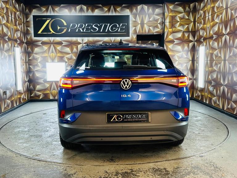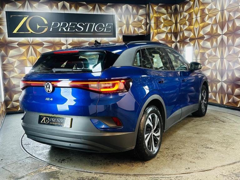Buy with confidence at ZG Prestige. We are Highly Rated by Auto Trader, recognised as one of the Top 5 Car Dealerships in the UK by CarDealer, and proud to be AA Approved, FCA Regulated, and part of The Motor Ombudsman. With Excellent ratings across Google, eBay, Motors, CarGurus, and PistonHeads, we deliver a trusted service from the towns largest indoor prestige showroom. Featured Vehicle: Volkswagen ID.4 Pure 52kWh Life Auto 5dr In Blue with Black Interior. Supplied with 2 Keys, Full Dealership Service History. Last Service done 08/12/2025, and MOT until 08/12/2026. Excellent condition both inside and out. Our detailed inspection will include replacing any worn wear and tear items like Tyres and Brakes. Some of the Great Specification includes Heated Front Seats, Reverse Camera, 18in Alloy Wheels - Falun and So Much More. When you buy from ZG Prestige, on this vehicle you will receive a FREE 16-Months Premium Warranty with nationwide coverage, no limit on claims, direct payment to the repairing garage, and protection against mechanical and electrical faults. You can extend the warranty for up to 36 months. Every car also includes 12 months AA Breakdown Cover, a clear Experian HPI report, and a 120+ point pre-delivery inspection including a full computer scan report. We offer nationwide delivery, flexible low-rate finance (PCP & HP) with 0% deposit, unbeatable part-exchange prices, and a 14-day money-back guarantee for complete peace of mind. Virtual appointments are available via phone, WhatsApp, or video callbuy from home, hassle-free. Reserve today for just 99 (Completely refundable). Contact us 24/7 on WhatsApp at [Phone number removed] or visit [Website URL removed].