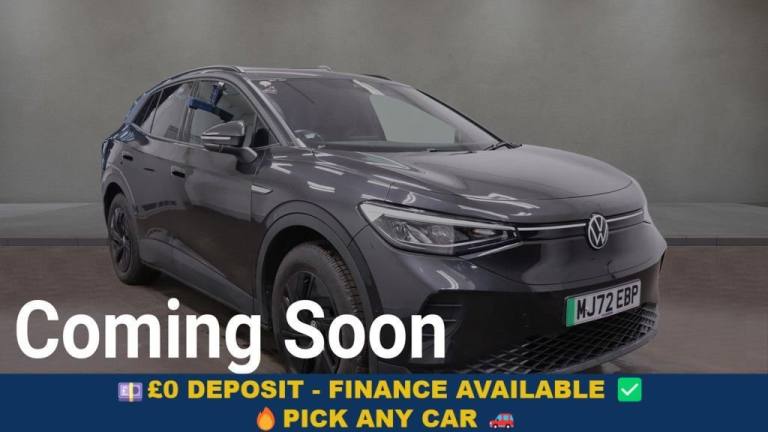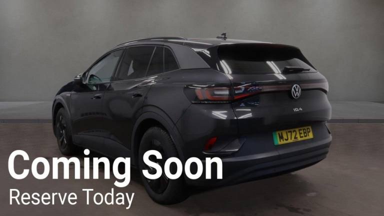 Why This Volkswagen ID.4 Wins? This 2022 Volkswagen ID.4 Pure Life is a fantastic one-owner electric vehicle with just 30,437 miles, combining low running costs with the practicality of a modern SUV. Its 55 kWh battery delivers a maximum range of up to 213 miles when new, making it ideal for daily commutes and longer trips. Charging is simple and flexible, with a full home charge taking around 7 hours 30 minutes, and rapid public charging bringing the battery to 80% in just 38 minutes. Inside, the cabin offers comfort and convenience for every journey. The Wireless Smartphone Charger keeps your devices powered, while the Comfort Pack provides climate control, heated seats, and a heated steering wheel. The Assistance Pack adds keyless entry and a rear parking camera, and the Driver Assistance Pack enhances safety with adaptive cruise control and front and rear parking sensors. These thoughtful features make driving and manoeuvring effortless. Your Peace of Mind? - Clear vehicle history check - Optional 3-36-month extendable warranties - Free 12-month AA roadside assistance - Fully prepared to showroom standard with its existing MOT and servicing, and we can organise any further MOT or service enhancements at your request. - Drive Away, Insurance Available - No hidden or extra costs, like admin fees Autotraders 2024 Insights: Top 3 ID.4 Buyer Priorities: - Efficient electric driving with low running costs - Spacious and practical SUV interior - Advanced comfort and driver assistance technology - This ID.4 meets these priorities perfectly, offering an electric drive with minimal running costs, a large boot and versatile cabin for everyday life, and a comprehensive suite of comfort and safety features that make every journey safer and more enjoyable. Stress-Free Next Steps: - Free Part Exchange Valuation - £0 Deposit Car Finance - Includes free credit checker - Reserve for £99 - Fully refundable.2 USB-C Ports in the Front and 2 USB-C Charging Socket on the Centre Console in the Rear, App Connect with Wireless Connection for Apple Carplay and Android Auto, Bluetooth Telephone and Audio Connection for Compatible Devices, Car2X - Intelligent Vehicle Networking, DAB Digital Radio, Navigation System - Discover Pro, Sound System, We Connect ID App, We Connect Plus, Wireless Smartphone Charger, eCall - Emergency Call Service for SOS Calls to Emergency Response, 18in Steel Wheels - Aero, Ambient Lighting - Exterior Illuminated Styling Elements in Door Handle Recesses, Body Coloured Bumpers and Flush Integrated Door Handles, Electric Windows - Front and Rear, Exterior Door Mirrors - Power Adjustable Folding and Heated, Heated Front Climate Windscreen - Wireless Electrically Conductive Layer in Glass Laminate, Heated Windscreen Washer Jets, Roof Rails, Tailgate-Trunk Lid Release from Outside, Tool Kit and Tyre Mobility Set 12-Volt Compressor and Tyre Sealant, 3 Head Restraints - Height Adjustable, Air Care Climatronic 2-Zone Air Conditioning System, Ambient Lighting with 30 Colour Options, Automatic Dimming Rear View Mirror, Carpet Mats - Front and Rear, Centre Console with Illuminated Storage Compartment with Sliding Cover and Two Drinks Holders, Electric Auxiliary Air Heater, Heated Front Seats, ID Light, Illuminated Smartphone Storage Compartment, Leather-Wrapped - Multi-Function - Heated Steering Wheel with Touch Control, Pedals - Pause and Play, Rain Sensor, Rear Seat Bench Unsplit - Backrest Split Folding with Centre Armrest, Storage Compartment in Front and Rear Doors, Sun Visors with Illuminated Vanity Mirrors, We Charge Go Access, Manganese Grey, LED Headlights with Automatic Driving Light Switching and LED Tail Lights, Mode 3 - 32-AMP - 7.2kW Charging Cable for Charging at Public Charge Points, Speed Sensitive Power Steering, 3-Point Seatbelts in Front with Seatbelt Pretensioners, ABS - Anti-Lock Braking System, ACC - Adaptive Cruise Control, Alarm with Interior Protection with Deactivation via Infotainment System, Curtain and Side Airbags in Front with Centre Airbag, Driver Alert System - Fatigue Detection, Drivers and Front Passengers Airbags with Front Passenger Airbag Deactivation Switch, Dynamic Road Sign Display, Exterior E-Sound, First Aid Kit and Warning Triangle and Safety Vest, Front Assist - Autonomous Emergency Braking with Pedestrian and Cyclist Monitoring, Hello ID Natural Voice Control, Isofix Child Seat Preparation - Easy-Fit - For
