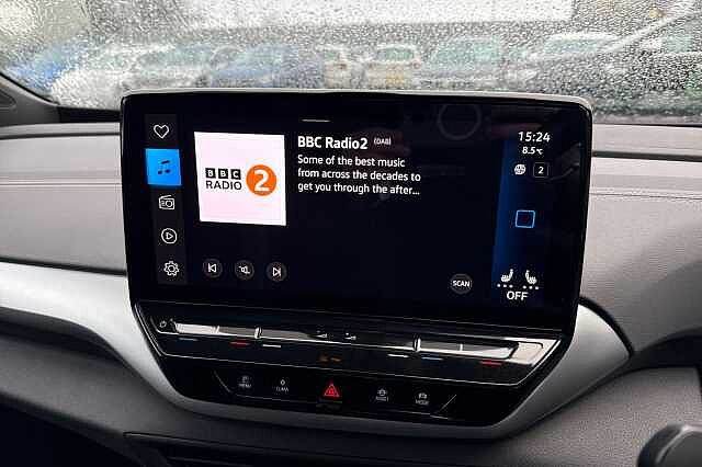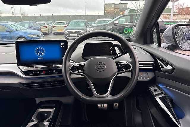 DAB radio, Voice control, Air conditioning, Brake assistant, Central locking, daytime running lights, Electric windows, USB, ABS, Active brake assist, 2x Front airbags (driver + passenger), ESP, Immobiliser, Traffic sign detection, Rear wheel drive, Traction control, 5 seats, Ambient lighting, ISOFIX Child seat fastener, Leather, Right-hand drive, Tinted windows, 5 doors, Speed limit: 99 mph Paint - Solid, Solid - Moonstone grey Exterior Features, Climate windscreen, Front electric windows, Privacy glass with 65% tinted windows, AC Charging socket, Aggressive front bumper, Aggressive rear bumper and diffuser, Body coloured bumpers, Integrated door handle, Integrated rear spoiler, Painted side skirt, Rear side wing doors, Roof frame and C-pillar in silver glossy, Roof trim strip in matte black, Silver roof frame strip, Daytime running lights, Exterior ambient lighting, Third brake light, Welcome light, Safety, Anti-lock braking system (ABS), Autonomous emergency braking front assist with pedestrian and cyclist monitoring, Electronic Stability Programme (ESP), Front disc brakes and rear drum brakes, Traction control, Driver alert system, Driver profile selection, Dynamic road sign display, Emergency assist 3.0, Oncoming vehicle braking when turning including swerve support, Power assisted speed sensitive steering, Traffic sign recognition, Automatic dimming interior rear view mirror, Exterior mirrors aspherical on driver side, convex on front passenger side, Gloss black door mirrors with integrated indicators, 3 Point seat belts in front with pretensioners, 3x3 point rear seatbelts, Driver and front passenger airbag with front passenger airbag deactivation, First aid kit with warning triangle, safety vest + 2 face masks, Front curtain and side airbags with center airbag, Pre-crash occupant protection, Rear door child safety locks, Single torn horn, Tyre pressure loss indicator, Interior Features, Front + rear carpet mats in recycled material, Electric auxiliary air heater, Art Velours microfleece cloth upholstery, Central control unit in black, Door and side trim panel with leatherette insert, Front seat armrests, Headliner in recycled material, Soul black and platinum grey dash inserts, Variable boot floor, height adjustable and removable, Rear wheel drive, Sun visors with illuminated vanity mirrors, Audio / Communications, App connect with wireless connection for apple carplay and android auto, Car2X intelligent vehicle networking, E-call, Natural voice control, Online service, with OCU, with head unit coding, without engine immobilizer interconnection, USB-C ports in the front and rear centre console with increased charging performance, DAB Digital radio, Diversity antenna for FM reception, Miscellaneous, ID. Light, Speedo and rev counter, electronic odometer, trip, service interval display and exterior temperature gauge, Warning signal and warning light for front and rear seatbelts not fastened, Auxillary battery with operating voltage 12V, Standard electronic engine sound actuator, Packs, Assistance pack - ID.5, Comfort plus pack - ID.5, Design plus pack - ID.5, Interior style pack - ID.5, Trim, 3 seat bench in 2nd row, Isofix child seat preparation easy-fit (for two outer rear seats, and front passenger seat) compatible with I-size, Safety optimised front head restraints, Single front passenger seat, Three rear head restraints, Security, Anti theft wheel bolts, Immobiliser, Remote central locking, Wheel locks with extended theft protection, Vehicle Charging, DC Battery charging capacity, Mode 3 32-amp / 7.2kW charging cable for charging at public charge points, On board battery charger, 1-phase 7.2kW and 3-phase 11kW, Wheels, Sealed tyres, Tool kit, Tyre repair kit