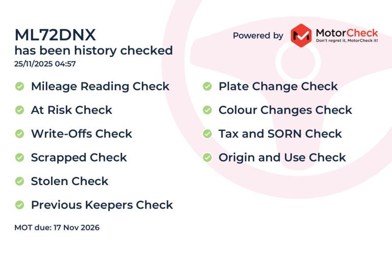 Our vehicle history check is provided for guidance only. Please check all the details with the seller before purchasing