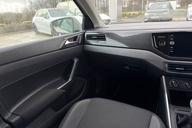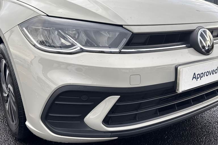 Finished in Ascot Grey solid paint, this Volkswagen Polo 1.0 TSI Life presents a clean, modern look that perfectly suits its compact yet confident design. The exterior is complemented by 15"" Essex alloy wheels, complete with anti-theft wheel bolts and low-rolling-resistance tyres, offering an excellent balance of efficiency, comfort and road presence. Inside, the cabin is trimmed in a smart Titanium Black interior, featuring coordinated seats, dashboard, carpets and roof lining for a refined and cohesive feel. The Polos interior layout is practical and well thought out, delivering everyday comfort with Volkswagens renowned build quality. Entertainment and connectivity are taken care of by the Ready 2 Discover infotainment system, offering wireless App-Connect, media streaming and internet capability. A six-speaker sound system, FM diversity antenna and preparation for built-in navigation ensure you stay connected and entertained on every journey. Safety and security are a strong focus, with an anti-theft alarm system including interior monitoring, backup horn and towing protection. Central locking with SAFELOCK and two folding remote keys adds further peace of mind whether parked at home or on the move. For added convenience, the Light & Sight Pack enhances daily driving with automatic headlights, LED daytime running lights, rain-sensing wipers and an auto-dimming rear-view mirror, making changing driving conditions effortless to manage. Driver assistance technology...
