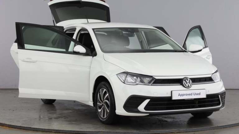 Discover smart, efficient motoring with this Volkswagen Polo 1.0 TSI Life 5dr (ULEZ), registration CA22WUJ, with 27,112 miles. Originally sold here at Mon Motors and having had just one previous owner, it has been cared for to a high standard and comes with a full Volkswagen Approved service history, most recently receiving an oil change service at 18,060 miles.The Polo Life is built to make every journey easy and comfortable, with front and rear parking sensors to take the stress out of manoeuvring, plus the crisp Digital Cockpit display for a modern, driver-focused feel. The 15 alloy wheels add a confident finish, while Adaptive Cruise Control helps make longer drives more relaxing. The Light and Sight Pack enhances visibility and convenience, and with Apple CarPlay and Android Auto you can seamlessly connect your smartphone for music, navigation and calls.When you purchase from Mon Motors Capitol Volkswagen Merthyr Tydfil, you ll enjoy all the benefits of the Volkswagen Approved Used scheme, including a minimum 12-month Warranty and 12 months Roadside Assistance. If the vehicle is under three years old, it is covered by Volkswagen s original 36-month manufacturer warranty, with the remaining term calculated as 36 months minus the vehicle s age; vehicles over three years come with a minimum 12-month warranty. For total reassurance, this Polo has had over 100 meticulous checks carried out by our Volkswagen-trained technicians and is available for immediate delivery.Buy with confidence from Mon Motors Capitol Volkswagen Merthyr Tydfil, an official Volkswagen franchise retailer. You ll benefit from expert product knowledge, manufacturer-approved standards, transparent provenance and professional aftersales support helping ensure your next car is as dependable as it is enjoyable to drive. Front and rear parking sensors, Special solid - Pure white, Electric front windows, Heat insulating darkened glass in side and rear windows, Rear electric windows, Rear shock absorpion, Body colour bumpers, Body colour door handles, Rear side wing doors, Third brake light, ABS, ESC (Electronic stability control) + EDL (Electronic Differntial lock) and ASR (Traction control), Front disc brakes, Rear drum brakes, Adaptive cruise control without follow-to-stop and speed limiter, Front assist system, Power assisted speed sensitive steering, Body colour door mirrors, Power folding adjustable/heated exterior mirrors and front passenger exterior mirror lowering function, 3