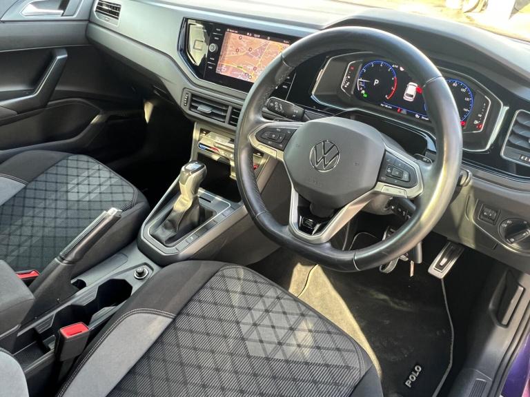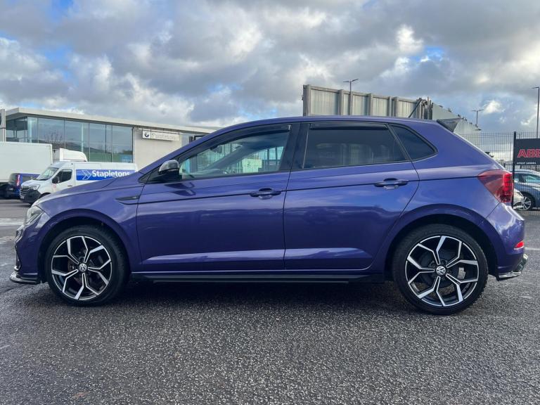 One of a kind VW Polo 1.0TSI DSG finished in Vibrant Violet Metallic, GTI Alloys & R Line Alloys Included, Maxton Design, Great Styling & Great Sound, Great Specification; Upgraded Navigation, Apple Car Play & Android Auto, Media, Speed Adaptive Cruise, Lane Change System & Much More, All Viewings Welcome. Call today and use our 99 holding fee before someone else does. This 2022 Volkswagen Polo TSI R Line boasts a full dealership service history, with its last service completed on 2025-01-10 at 35968 miles, ensuring excellent provenance. This Euro 6 compliant model features a 1.0 litre petrol engine and is presented in the R Line trim. Notable features include the advanced IQ Light LED Matrix Headlights, 17 inch Bergamo alloy wheels, and Keyless Access for effortless locking and starting. The Driver Assistance Pack, with front and rear parking sensors, enhances manoeuvrability, while the mobile phone interface offers wireless inductive charging for your convenience.This Volkswagen Polo is designed for practicality and ease of use, offering a generous boot space for all your needs. Its low insurance group rating makes it an economical choice for many drivers. Furthermore, the vehicle will be provided with a 12 month MOT, giving you peace of mind. These aspects, combined with its comprehensive service history and desirable R Line specification, highlight how this Polo stands out from other vehicles in its class.