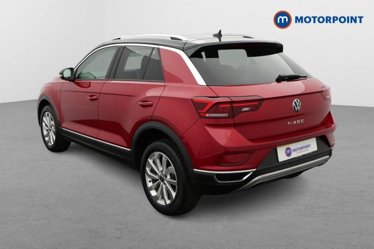 Save £11261.00 off the new list price on our 2022 Volkswagen T-Roc in Red. With only 17853 miles on the clock, this T-Roc Style comes with 3 months warranty and boasts a number of features including SatNav, Bluetooth, Cruise Control, Climate Control, Half Leather, DAB, Alloys, Electric Mirrors, 17"" Wheels, Parking Sensors Front and Rear, Privacy Glass, Signature metallic - Kings red and more.At Motorpoint, we stock over 1,000 new cars every week with flexible finance options to suit you. We have a huge range of nearly new, low mileage cars from nearly all major manufacturers for you to choose from. All cars come with a minimum 3 month warranty and are tested to the Motorpoint Quality Standard to give you peace of mind. Every car is available to buy online or in store, and can be delivered straight to your nearest Motorpoint branch. You can reserve online today or if you would like to book a test drive or find out more about this car, please call our team and quote 1590461.