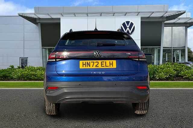 DAB radio, Air conditioning, Bluetooth, Electric windows, Electronically retractable wing mirror, Full LED headlights, Heated front seats, Hill holder, Light sensor, Aluminium wheels, Servo steering, USB, 2x Front airbags (driver + passenger), Alarm device, ESP, Fog lamp, High beam assist, Multifunctional steering wheel, Front wheel drive, 5 seats, Ambient lighting, Centre arm rest, Divided back seats, ISOFIX Child seat fastener, Leather steering wheel, Right-hand drive, 5 doors, Speed limit: 114 mph Exterior Features, Metallic paint, Trim, Heated front seats, Paint - Metallic, Metallic - Reef blue, Wheels, 16"" Everett alloy wheels- black diamond-turned surface Exterior Features, Electric windows, Heat insulating glass windscreen, Rear wash/wipe with intermittent wipe setting, Body coloured bumpers, Body coloured exterior mirror housings and door handles, External USB type C socket and charging sockets, Rear side wing doors, Ambient lighting with logo projection, Auto headlights, Front fog lamps with cornering function, Headlight range control, LED headlamps, LED rear combination lamp, LED third brake light, Rear fog light on one side, reversing light on both sides, Safety, Electronic stability control, Front and rear disc brakes, Hill start assist, Driver alert system, Power Steering, Aspherical driver's exterior mirror, Left convex exterior mirror, Power folding adjustable/heated exterior mirrors and front passenger exterior mirror lowering function, 2 x 3-point seatbelts/outer rear seats with ECE label, 3-point seat belts in front with pretensioner and height adjustment, 3-point seatbelt for centre rear seat, Driver and front passenger airbags with front passenger airbag de-activation, front side and curtain airbags, Driver and front passenger safety-optimised head restraints, Extended and predictive pedestrian/ cyclist protection, Front curtain and side airbags with center airbag, Manual rear child locks, Single tone horn, Tyre pressure loss indicator, Interior Features, Black carpets, 'Slash/ Austin' Cloth upholstery, 12V socket in centre console, Door and side trim panels in titan black, Front centre armrest, Handbrake lever handle in leather, Height and reach adjustable steering wheel, Leather trimmed gear knob, Leather wrapped multifunction steering wheel, Luggage compartment floor, Seat covers in titanium black, Storage compartment under front seats, 2 front reading lights, Luggage compartment light, Sun visors with illuminated vanity mirrors, Audio / Communications, App-Connect including App-Connect Wireless, Wireless Charging including Bluetooth, Digital radio reception (DAB+), Diversity antenna for FM reception, WeConnect plus, Miscellaneous, e-Call (emergency call), Travel assist including emergency assist, Washer fluid level indicator, Start-stop system with battery regeneration (recuperation - energy recovery during braking), Trim, Lava stone black gloss/matt decorative inserts in dash and front door panels, 3 rear head restraints, 3 seat bench in 2nd row, Child seat anchor for child seat system i-Size, 2x top tether and child seat anchor in front on front passenger side, Driver and front passenger seat height adjustment, Lumbar support for driver's and front passengers seat, Single front passenger seat, Split folding backrest with centre armrest and unsplit rear seat bench, Packs, Chrome Package - Taigo, Drivers assistance pack - Taigo, Light and Sight pack including High beam assist - Taigo, Security, Anti-theft alarm system with interior monitoring, backup horn, and towing protection, Anti-theft wheel bolts, Wheels, Low rolling resistance tyres