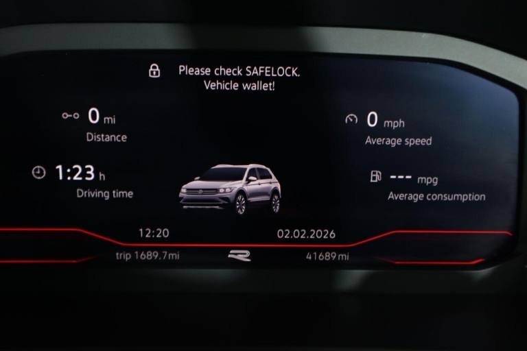 This 2022 Volkswagen Tiguan TDI R-Line offers an exceptional ownership history, having had only one owner since new. This popular SUV is powered by an efficient 2.0 litre diesel engine, meeting Euro 6 emission standards. The R-Line trim level enhances its sporty appeal, and it comes equipped with a host of desirable features. These include the Winter Pack for added comfort with heated seats and a heated steering wheel, and App-Connect functionality for seamless integration with Android Auto and Apple CarPlay. For enhanced visibility and safety, it boasts LED Plus self levelling dipped and main beam headlights, along with automatic driving lights activated by a dusk sensor. Long journeys are made more relaxed with Adaptive Cruise Control, which also includes predictive cruise control. This Tiguan stands out with its impressive fuel economy, achieving a highlight of 50 miles per gallon, which is better than many similar vehicles. Its low CO2 emissions are also a significant advantage, contributing to lower running costs and environmental impact. Furthermore, its low insurance group rating means more savings for you. Practicality is a key strength, with generous boot space making it ideal for families and all your luggage needs..12V Socket in Centre Console in Storage Area, 12V Socket in Luggage Compartment, 12V Socket on Rear of Front Centre Armrest, 2 LED Reading Lights in Front and 2 in Rear, 2 USB-C Ports in the Front and 1 USB-C Charging Socket on the Centre Console in the Rear, 20in Alloy Wheels - Misano - Black - Diamond-Turned Surface, 3 Rear Three-Point Seat Belts with Tensioners on Outer Seats, Adaptive Cruise Control - ACC with Predictive Cruise Control, Air Conditioning - 3 Zone Electronic Climate Control, Airbags, Ambient Lighting Pack, Anti-Theft Alarm System with Interior Monitoring - Backup Horn and Towing Protection, Anti-Theft Wheel Bolts, App-Connect, Assistance Pack Plus, Automatic Coming-Leaving Home Lighting Function, Automatic Dimming Rear View Mirror, Automatic Hazard Lights Activation Under Emergency Braking, Black Grained Lower Door Protectors with Chrome Insert, Black Rooflining, Body Coloured Bumpers and Door Handles, Body Coloured Door Mirrors with Integrated Indicators, Body-Coloured Roof Spoiler - Rear, Brushed Stainless Steel Pedals And Footrest, Chrome Plated Electric Mirror Adjustment Switch Surround, Chrome Plated Electric Window Button Surrounds, Chrome Side Window Surrounds, Chrome Trim - Twin Trapezoid Styling Elements on Lower Bumper - Left and Right, Cup Holders - Front x2, Decorative Inserts Carbon Grey in Dash and Front Door Trim Panels, Digital Cockpit Pro, Discover Media Navigation Infotainment System including Streaming and Internet, Driver Alert System - Fatigue Detection, Driver Profile Selection - Choice of Three Settings - Eco - Normal and Sport Modes, Drivers and Passengers Safety Optimised Head Restraints, Dusk Sensor - Automatic Driving Lights, Electric Windows - Front and Rear, Electrically Heated - Adjustable and Foldable Door Mirrors with Memory, Electromechanical Parking Brake with Auto Hold Function, Electronic Engine Immobiliser, Electronic Stability Control with Driver Steering Recommendation - ABS - ASR - EDL - EDTC and Trailer Stabilization, Front Air Intake with Chrome Strip, Front Assist with City Emergency Braking System and Pedestrian Monitoring, Front Footwell Illumination, Front Passengers Seat Folding Backrest, Front Sport Seats with Height and Lumbar Adjustment, Front Three-Point Seat Belts with Height Adjustment and Seat Belt Tensioners, Glovebox, Headlight Range Control, Heated Front Seats, Heated Leather Trimmed Three Spoke Multifunction Capacitive Touch-Sensitive Steering Wheels and Gear Knob, Heated Rear Win