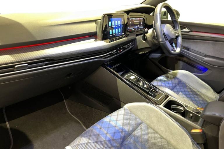 This 2023 Volkswagen Golf R is a superb example, having had only one owner from new and boasting a clear vehicle history check. This Euro 6 compliant model features a potent 2.0 litre petrol engine paired with a four wheel drive drivetrain, offering a dynamic driving experience. Its MOT is valid until May 2026, providing peace of mind for the new owner. Inside, youll find a host of convenient features including a dusk sensor for automatic driving lights, adaptive cruise control for effortless journeys, and parking sensors front and rear to aid manoeuvrability. Stay connected and charged with the premium USB C cable offering Apple CarPlay and Android Auto compatibility, alongside a wireless smartphone charger. The performance of this Golf R is truly exceptional, with an impressive 0-60mph acceleration time of just 4.7 seconds, demonstrating its superior capability compared to other vehicles in its class. This rapid acceleration is a testament to the engineering of the 2.0 litre TSI engine. Furthermore, the generous boot space ensures practicality for everyday use and longer trips. This combination of exhilarating performance, advanced technology, and ample storage makes this Volkswagen Golf R a stand out choice. Lifetime warranty available on this car, plus a £1,000 finance contribution when you part exchange. Voted UK Car Supermarket of the Year two years running, we offer 0% finance, part exchange, and lifetime warranties across our entire range. Every car is thoroughly inspected before sale and comes with a full history check, so you can buy with complete peace of mind. Buy with confidence on our best finance rates. Proud winners of the CarGurus Top-Rated Dealer 2022 and the MotoNovo Extra Mile Award. .12V Socket - Centre Console, 12V Socket - Luggage Compartment, 18in Alloy Wheels - Jerez, ABS - Anti-lock Braking System with HBA - Hydraulic Brake Assist, Adaptive Cruise Control, Air Conditioning - 3 Zone Electronic Climate Control, Airbags, Alarm with Interior Protection with Deactivation via Infotainment System, Ambient Lighting, App-Connect, Automatic Coming-Leaving Home Lighting Function, Automatic Post-Collision Braking System, Bag Hooks in Luggage Compartment - Left and Right, Black Metal Chrome Decorative Inserts in Dash and Front Door Panels, Body Coloured Bumpers, Body Coloured Door Handles, Brake Calipers - Blue, Car2X - Intelligent Vehicle Networking, Carpet Mats - Front and Rear, Central Locking - Remote with 2 Remote Keys, Centre Console in High Gloss Black Finish, Chrome Exhaust Tailpipe - Left and Right, Chrome Plated Electric Mirror Adjustment Switch Surround, Chrome Plated Electric Window Button Surrounds, Cup Holders - Front x2, Digital Cockpit Pro, Digital Speedo and Rev Counter - Electronic Odometer - Trip - Service Interval Display - Exterior Temperature Gauge and Fuel Gauge, Discover Navigation Infotainment System, Door Mirrors - Electrically Adjustable-Heated and Folding, Door Sill Protectors, Driver Alert System - Fatigue Detection, Driver Profile Selection, Drivers and Passengers Safety Optimised Head Restraints, Dusk Sensor - Automatic Driving Lights, Dynamic Road Sign Display, Electric Windows - Front and Rear, Electronic Engine Immobiliser, Electronic Parking Brake with Auto Hold Function, ESC - Electronic Stability Control, Front Centre Armrest with Storage Compartment, Front Differential Lock, Front Seat Back Storage Pockets, Front Sport Seats with Height and Lumbar Adjustment, Galvanised Body, Gloss Black Decorative Inserts in Dash Surround with Parking Brake, Glovebox, Grab Handles - Front - Rear x2, Head Restraints - Front Integrated, Heated Rear Windscreen, Height and Reach Adjustable Steering Wheel, Height-Adjustable Front Three-Point Seat Belts with Tensioners, High Level 3rd Brake Light Incorporating LED Technology, Highway Light, Illuminated Front Grille, Interior Light Delay, IQ Light LED Matrix Headlights includes Dynamic Cornering, ISOFIX Child Seat Preparation, Keyless Entry - with Start-Stop Button, Lane Assist with Road Edge Recognition, Lapiz Blue, LED Footwell Illumination - Front, LED Front Fog Lights - x5 Individual Set in Honeycomb Front Air Intake, LED Lighting in Door Handle Recess - Front and Rear, LED
