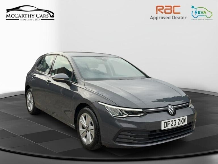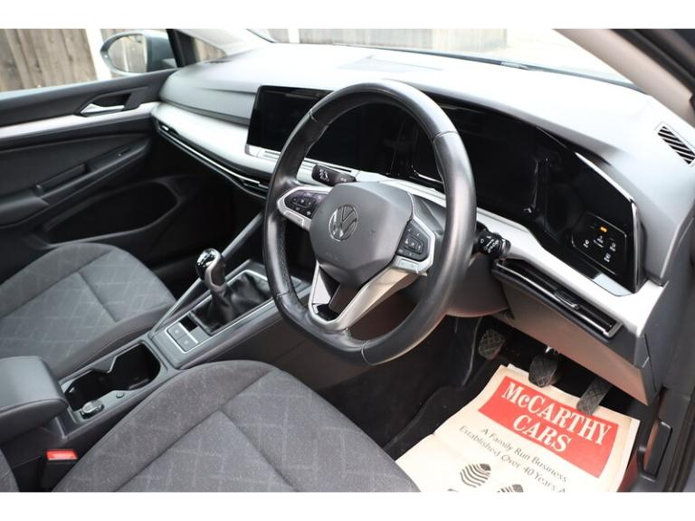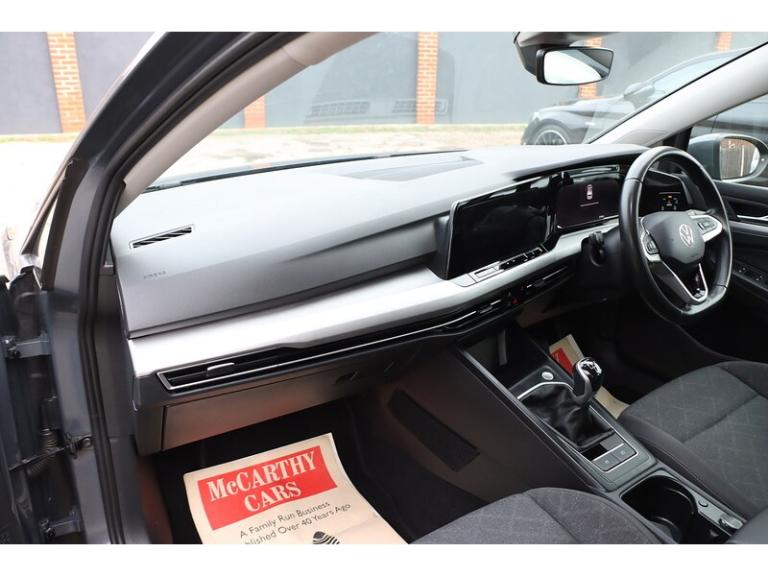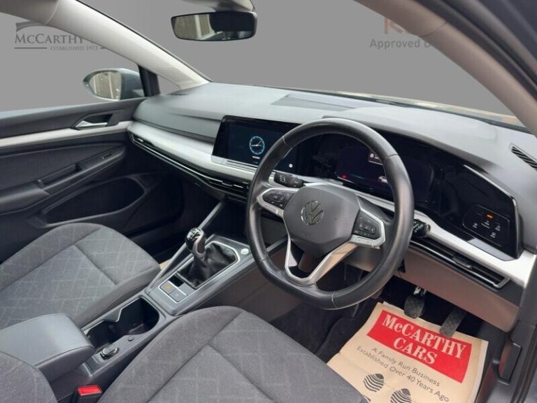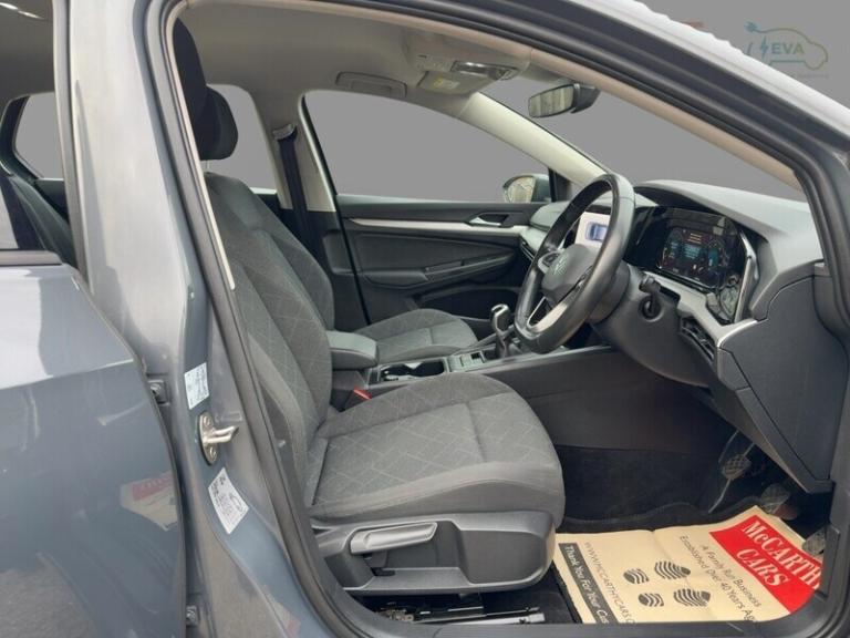 'Nature Cross Brushed' decorative inserts,Dolphin Grey metallic,Paint - Dolphin Grey metallic,1498 cc in-line 4 engine,10.30 inch 26.2cm multi-function display screen(s) located on instrument panel fixed 10.00 inch 25.4cm touch sensitive multi-function display screen(s) located on dashboard Dashboard centre 1,10.30 inch 26.2cm multi-function display screen(s) located on instrument panel fixed 10.00 inch 25.4cm touch sensitive multi-function display screen(s) located on dashboard instrument cluster 1,12v power outlet located in boot/cargo section and front section boot/cargo,12v power outlet located in boot/cargo section and front section front,50 litre 11.0 UK gallon main fuel tanks main,80 watt audio player with touch screen ; radio receives FM digital internet and RDS,ABS,Adaptive cruise control adaptive cruise cont linked to mapping,Airbag for central front seat,Alloy & leather multi-function steering wheel with touch controls tilt adjustment and telescopic adjustment,Alloy trim on dashboard alloy trim on doors and leather gearknob,Ambient lighting,Ambient lighting colour selection,Anti collision system which activates brake lights and brakes at low speed includes brake assist and includes driver monitor visual/acoustic warning and pedestrian & cyclist avoidance system operates above 50 kph/30 mph and operates below 50 kph/30 mph,Anticorrosion warranty: 144 months Unlimited miles 9999999 km,Anti-theft protection with interior monitoring,Apps control,Asymmetrically folding rear seats: bench type with space for three people; with zero electric adjustments and ski hatch front,Automatic air conditioning with one climate control zone,Automatic hazard lights,Bluetooth,Body colour power door mirrors/cameras ; heated with integrated indicator lights driver,Body colour power door mirrors/cameras ; heated with integrated indicator lights passenger,Brake assist system,Built-in Apps,Central door locking: Operated by mobile phone Includes windows,Centre armrest between front seats,Centre armrest between rear seats,Charges: VAT [20%] = 4472.50 VED (Standard Rate) = 180.00 FRF = 55.00 VED (First Year 111 - 130 g/km) = 210.00 Additional Charges (GB) = 0.00,Computer includes average fuel consumption,Connections for USB (front) 1 and 0,Cup holders for front seats and rear seats front seats,Cup holders for front seats and rear seats rear seats,Cylinder shutdown,Data completeness: up to date pricing data up to date data for key leasing items specifications data from official price list up to date colour & trim data up to date option pricing data and up to date option content data,Date introduced: Model introduced 06 Feb 2020 and Version introduced 06 Feb 2020,Day time running lights,Driver and passenger seat: individual type driver,Driver and passenger seat: individual type passenger,Drivers airbag passengers airbag with de-activation switch driver,Drivers airbag passengers airbag with de-activation switch passenger,Dynamic steering,Electrical system 12,Electronic hand brake,Electronic traction control,Emergency call,Emissions: EU6 D compliant,Energy recuperation from regenerative braking,Engine start/stop,Euro NCAP crash test results: Overall: 5.0 Adult occupant: 88.0 Child occupant: 87.0 Pedestrian: 74.0 Safety assist: 82.0 Version tested: VW Golf 1.5 TSI ""Life"" TSI 5dr HA Date tested: 12 Oct 2022 Euro NCAP,Exterior door handles,External dimensions: 4284mm long 1789mm wide 1491mm high 2619mm wheelbase 1533mm front track 1504mm rear track 10900mm turning circle (wall to wall) 168.7 inches long 70.4 inches wide 58.7 inches high 103.1 inch wheelbase 60.4 inch front track 59.2 inch rear track 2073 35.8 and 81.6,Five door hatchback ; Platform code: MQB-evo Right hand drive,Five seats configured 2+3,Fixed delivery charges: 685.00 570.83 (excluding VAT) fuel included 0 litres includes number plates,Four disc brakes including two ventilated discs,Front and rear electric windows with one-touch on two windows front,Front and rear electric .Metallic Dolphin Grey, Contrasting Black Sports Interior, Touch Screen Infotainment System, Satellite Navigation, Front And Rear Parking Sensors, Bluetooth With Music Streaming, DAB Radio, USB Input, Digital Cockpit Pro, Air Conditioning, Climate Control, Adaptive Cruise Control, Electric Windows/Mirrors, Multi-Function Steering Wheel, 6 Speed, Power Steering, ABS Brakes, Multi Airbags, 5 Headrests, Three Point Rear Seatbelts, ISOFIX Child Seat Preparation, Push Button To Start, Arm Rest, Daytime Running LED Lights, 16in Alloy Wheels, Remote Alarm, Just 1 Private Owner From New, This Car Has Covered Only 21000 Miles & Benefits From A Full Service History, This Car Costs Just £195 A Year Road Tax, NO ULEZ CHARGE.Don't miss out on the opportunity to own this exceptional Volkswagen 1.5 TSI Life Hatchback. Contact us today to arrange a test drive and experience the thrill of driving this premium hatchback for yourself.