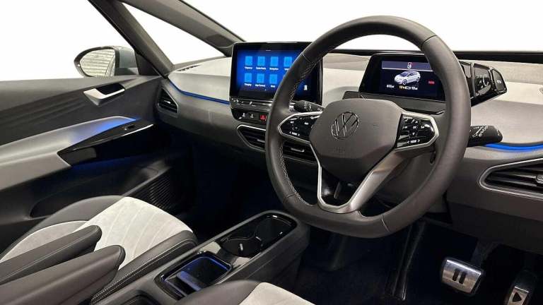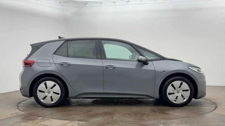 Now available at Wrexham Volkswagen is this Volkswagen ID.3 Family. Powering this ID.3 is a 58kWh battery that produces 145PS with automatic transmission. This ID.3 has a battery range of up to 257 miles*, and can reach a charge of 80% in just 37 minutes at its fastest charging speed of 150kW. The exterior, which is finished in the Moonstone Grey paintwork, comes with a range of features on offer. To the front of the vehicle youll find the Matrix LED headlights that provide outstanding visibility, and to the side the rear tinted windows for passenger privacy and the 18in alloy wheels. For added convenience this ID.3 also features keyless access and starting, and parking sensors that assist with maneuvering alongside the rear view camera. Moving inside, the cloth seating ensures comfort on every journey. The rear seating area features a folding armrest with cupholders and USB ports. Naturally lighting the interior is the panoramic glass roof. The cabin features a pair of heated seats with manual adjustment and armrests, wireless smartphone charger and USB ports, various storage compartments, multifunction steering wheel and touchscreen display. From this display you can access the climate controls alongside features such as navigation, FM/DAB radio, bluetooth connectivity for hands-free phone use and media streaming, and Apple Carplay/AndroidAuto. For more information regarding our flexible finance options or a personalised video, contact our sales team now. This car com...