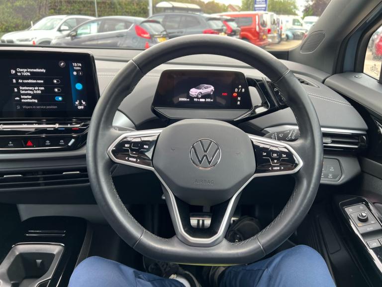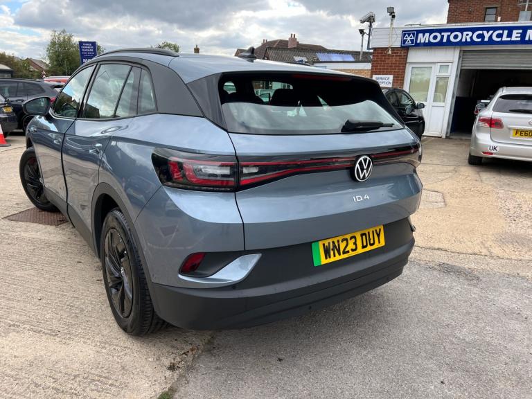 This 2023 Volkswagen ID.4 Pure Life is a superb example of electric motoring, boasting a full dealership service history with its last service completed on 2025-02-10 at 16,574 miles, and it has covered just 20,000 miles from new. This one owner vehicle is powered by a 55 kWh battery, offering a maximum range of 213 miles when new, and benefits from a fresh MOT upon sale agreement. It features striking LED headlights with automatic switching and matching LED tail lights, enhancing both visibility and the car's modern aesthetic.Inside, you'll find a host of convenient features designed to make every journey enjoyable. The App Connect system allows for seamless wireless integration of Apple CarPlay and Android Auto, keeping you connected on the go. For added comfort, the ID.4 Pure Life includes heated front seats and a wireless smartphone charger. The inclusion of Bluetooth connectivity for telephone and audio further enhances the user experience. The generous boot space provides ample room for all your luggage, making this electric Volkswagen ID.4 a practical and well equipped choice.