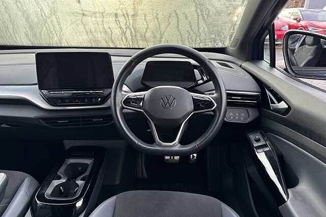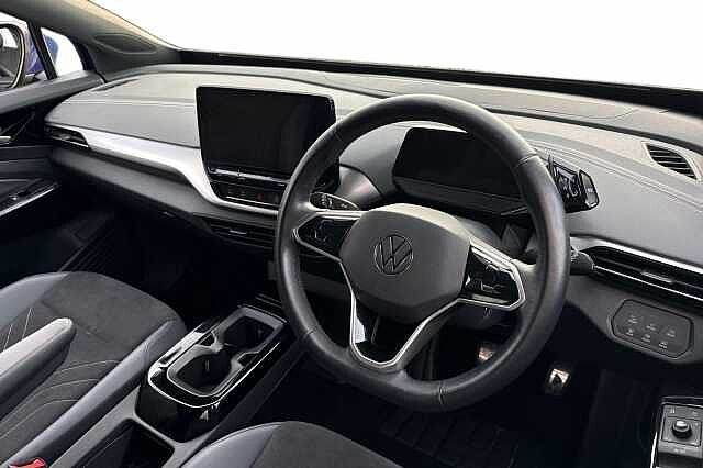 Rear window wiper, Navigation system, DAB radio, Voice control, Air conditioning, Bluetooth, Central locking, Cruise control, Electric windows, Electronically retractable wing mirror, Heated front seats, Heated steering wheel, Light sensor, On-board computer, Rain sensor, USB, ABS, Adaptive cruise control, 4x Airbags (front + side airbags), ESP, Immobiliser, Lane changing assistant, Multifunctional steering wheel, Rear wheel drive, Traction control, 5 seats, Ambient lighting, Centre arm rest, Divided back seats, ISOFIX Child seat fastener, Leather, Leather steering wheel, Single-seater, Delivery from 04.02.2026, 5 doors, Speed limit: 99 mph Paint - Metallic, Metallic - Blue Dusk, Trim - Cloth, Art velours microfleece cloth - Soul black/Platinum grey with Platinum grey/Soul black interior inserts Exterior Features, Acoustic glazing rear window and side windows darkened at the rear, Front and rear electric windows, Heated clear glass windshield, Heated rear window, Heated washer nozzles in front, Laminated safety glass windshield, heated (w/o wires), infrared-reflecting windshield, sound-insulating, Rain sensor, Rear wiper, Body colour door handles, Body coloured bumpers, Rear side wing doors, Automatic headlights, Third brake light, Safety, Anti-lock braking system (ABS), Electronic parking brake with auto hold, Electronic Stability Programme (ESP), Front disc brakes, Traction control, Adaptive cruise control ACC stop and go including speed limiter, Driver alert system, Driver profile selection, Dynamic road sign display, Emergency call control unit with eCall, Multifunction camera, Winter driving mode with ASR deactivation button, Automatic dimming interior rear view mirror, Body coloured door mirrors with intergrated indicators, Power adjustable, heated and folding wing mirrors, 3x3 point rear seat belts, Child safety lock, Curtain airbag system for front and rear passengers, Driver and front passenger airbag with front passenger airbag deactivation, First aid kit with warning triangle and safety vest, Proactive passenger protection system in combination with front assist, Seat belt reminder (Japan design), Seatbelt tensioners in front and rear outside, pyrotechnic belt end fitting tensioners at the front, Side airbag in front with curtain airbag and interaction airbag in front, Single torn horn, Tyre pressure monitor, Interior Features, Front + rear carpet mats, Electric auxiliary air heater, 2 USB-C ports in the front, 2 USB-C charging sockets on the center console in the rear, Art Velours microfleece cloth upholstery, Backrest with ID perforation, Center console and armrests in the front seats, Heated steering wheel, Illuminated smartphone storage compartment, Leather wrapped multifunction steering wheel with decorative aluminum inserts, Play and Pause brake and accelerator pedals, Pockets and smartphone pockets in seats, Reach + rake adjustable steering column, Sides,rear and armrest in leatherette, Storage compartments in driver and front passenger, Variable center console with changeable inserts for cup holders and storage compartments, 30 colour ambient lighting, Sun visors with illuminated vanity mirrors, Audio / Communications, Natural voice control, Online service, with OCU, with head unit coding, without engine immobilizer interconnection, Telephone interface comfort with inductive charging function, USB-C ports in the front and rear centre console with increased charging performance, We Charge Go access, We Connect Plus integrated data volume, Wireless app connect, Bluetooth connectivity including audio streaming, DAB Digital radio, Radio, Soundsystem of six loudspeakers with 140 watt output with two full range speakers in the rear doors and 2 way speaker system installed in front area, Touch control, Driver Convenience, Car2X high variant, Remote tailgate unlocking, Miscellaneous, 5.3"" Digital dashboard display, BLIS (Blind spot information system), Comfort telephony with LTE and wireless charging, Discover Navigation Pro capacitive touch-screen navigation infotainment system with 10 inch display, Emergency call service, Hand brake/low brake fluid level warning light and inscription, ID. Light, Trip computer, Warning buzzer and light for front seatbelts unfastened, Exterior e-sound, Standard electronic engine sound actuator, Trim, Comfort dashboard, 3 seat bench in 2nd row, Asymmetric split folding rear seat backrest with load through hatch and center armrest, 2 beverage holders, Child seat anchor for child seat system i-Size, 2x top tether and child seat anchor in front on front passenger side, Front headrests, Heated front seats, Three rear head restraints, Packs, Assistance pack - ID.4, Comfort plus pack - ID.4, Design plus pack - ID.4, Driving assistance pack - ID.4, Security, Anti-theft alarm system with interior monitoring, backup horn, and towing protection, Immobiliser, Remote central locking with 2 remote keys, Vehicle Charging, Mode 3 32-amp / 7.2kW charging