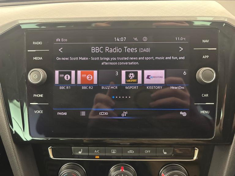 Experience comfort and style with this Volkswagen Passat Estate. Enjoy a premium feel with Vienna leather heated seats and advanced tech such as Adaptive Cruise Control, Discover Navigation, and Sat Nav. Effortlessly park with front and rear sensors and drive confidently with LED headlights. The smooth automatic gearbox with paddle shift adds a touch of sportiness. This elegant grey estate is the perfect blend of practicality and luxury for your daily journeys. 1 service recorded, last serviced on 20/04/2026 at 18,921 miles. MOT to 03/02/2027. Visit our website for service history, online valuation, full vehicle specification plus multiple images. This vehicle is VAT qualifying. Any feature/option specified here is from 3rd party data. We cannot guarantee the accuracy of any specification supplied by a 3rd party. We recommend that you physically check the specification of the vehicle on site prior to purchase. This information does not form part of the buying contract. Terms & Conditions apply. We have over 2,000 cars available from our 10 national branches, check our website to see all our stock. Our Trustpilot rating is 4.4/5 with over 9,000 reviews.