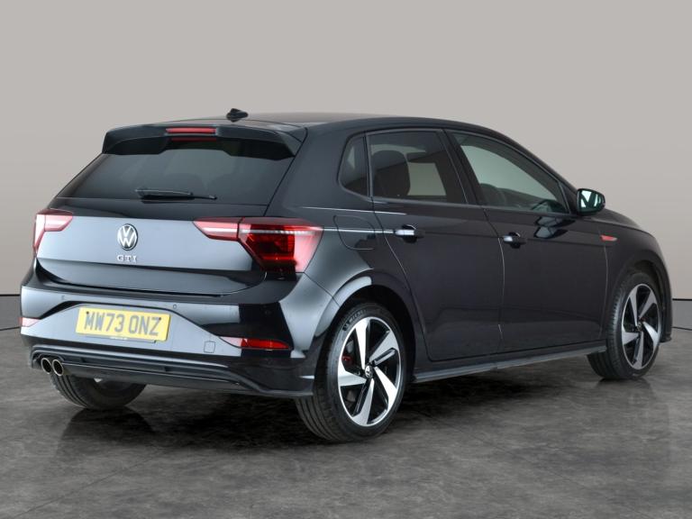 Experience sporty driving in this Volkswagen Polo GTI Hatchback, featuring Adaptive Chassis Control for comfort or dynamic performance at the touch of a button. Enjoy tech like Adaptive Cruise Control, Discover Navigation, and a high-definition touchscreen with Apple CarPlay and built-in Wifi. Safety highlights include Active Lane Assist and a Lane Departure Warning System, while striking LED headlights ensure you'll stand out on every journey. Bluetooth audio streaming keeps your favourite tunes close by for every trip. 1 service recorded, last serviced on 09/12/2025 at 9,336 miles. MOT to 30/09/2026. Visit our website for service history, online valuation, full vehicle specification plus multiple images. This vehicle is VAT qualifying. Any feature/option specified here is from 3rd party data. We cannot guarantee the accuracy of any specification supplied by a 3rd party. We recommend that you physically check the specification of the vehicle on site prior to purchase. This information does not form part of the buying contract. Terms & Conditions apply. We have over 2,000 cars available from our 10 national branches, check our website to see all our stock. Our Trustpilot rating is 4.4/5 with over 9,000 reviews.