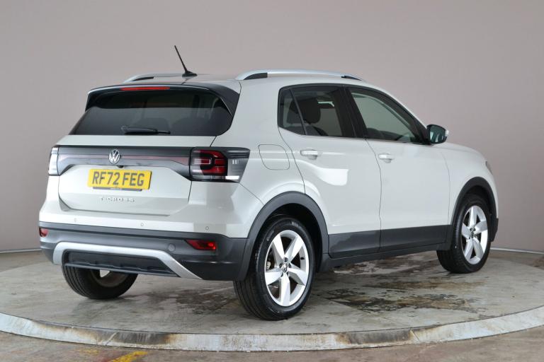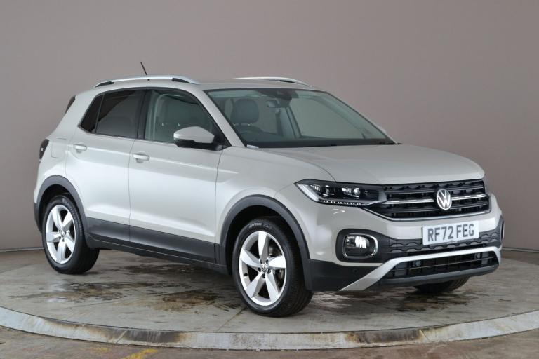 Step into style with this grey Volkswagen T-Cross, offering comfort and innovation in a smart SUV package. Enjoy smooth parking with the optional reversing camera, while adaptive cruise control and advanced LED headlights make every drive a breeze. Stay connected on the go with Apple CarPlay, Bluetooth, and Car-Net App-Connect. The 17in alloy wheels add a sporty touch, and the dual zone digital climate control with half leather seats keeps every journey relaxing. Experience driving made easy with front and rear parking sensors and built-in sat nav. 1 service recorded, last serviced on 16/01/2026 at 22,968 miles. MOT to 27/01/2026. Visit our website for service history, online valuation, full vehicle specification plus multiple images. This vehicle is VAT qualifying. Any feature/option specified here is from 3rd party data. We cannot guarantee the accuracy of any specification supplied by a 3rd party. We recommend that you physically check the specification of the vehicle on site prior to purchase. This information does not form part of the buying contract. Terms & Conditions apply. We have over 2,000 cars available from our 10 national branches, check our website to see all our stock. Our Trustpilot rating is 4.4/5 with over 9,000 reviews.